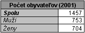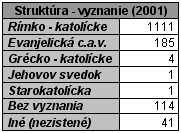 Štruktúra, počet a religiozita obyvateľov obce zo sčítania z 26.5.2001 sú nasledovné: