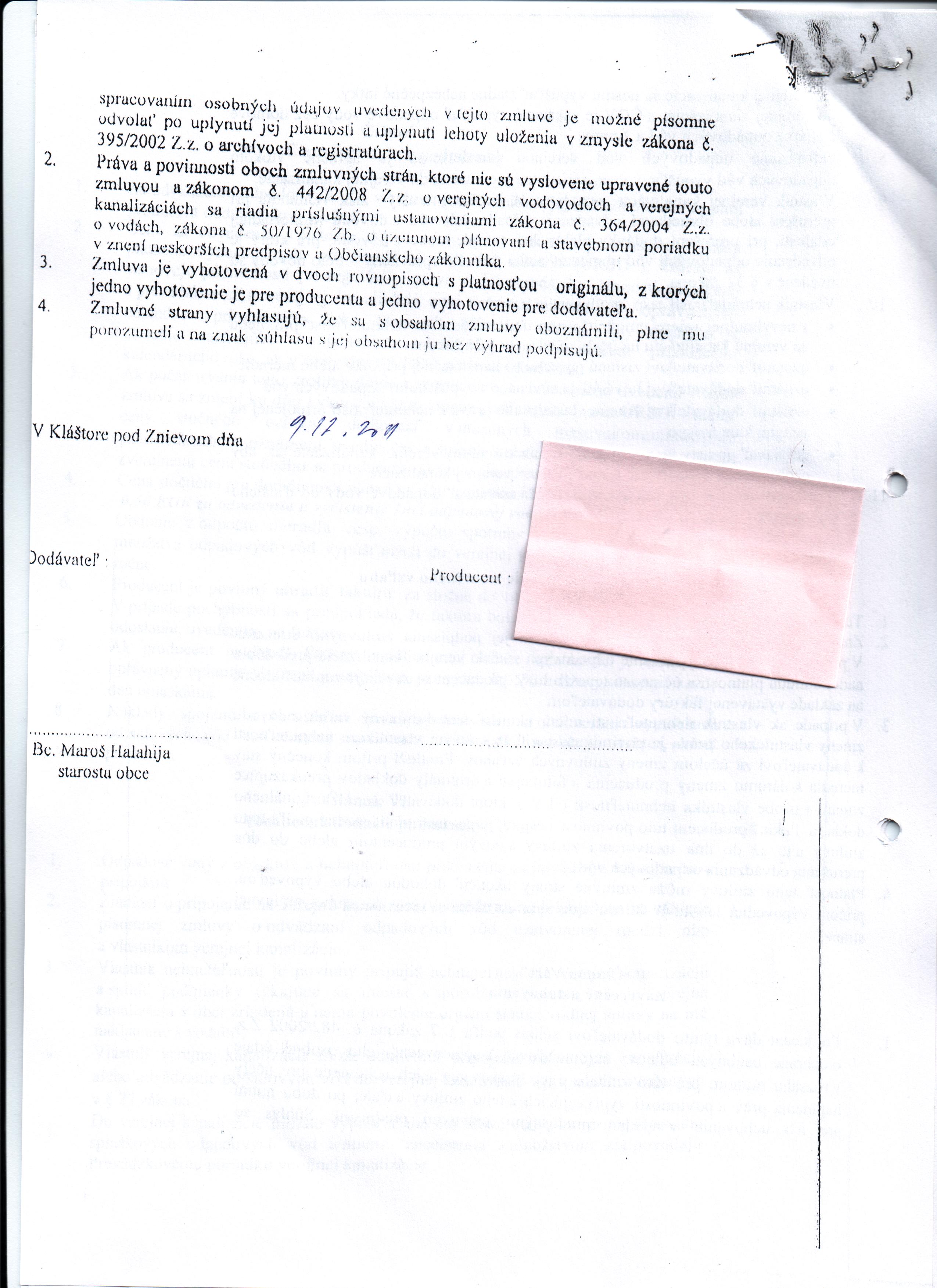 Zmluvy » subjekt: Obec Kláštor pod Znievom » rok: 2011