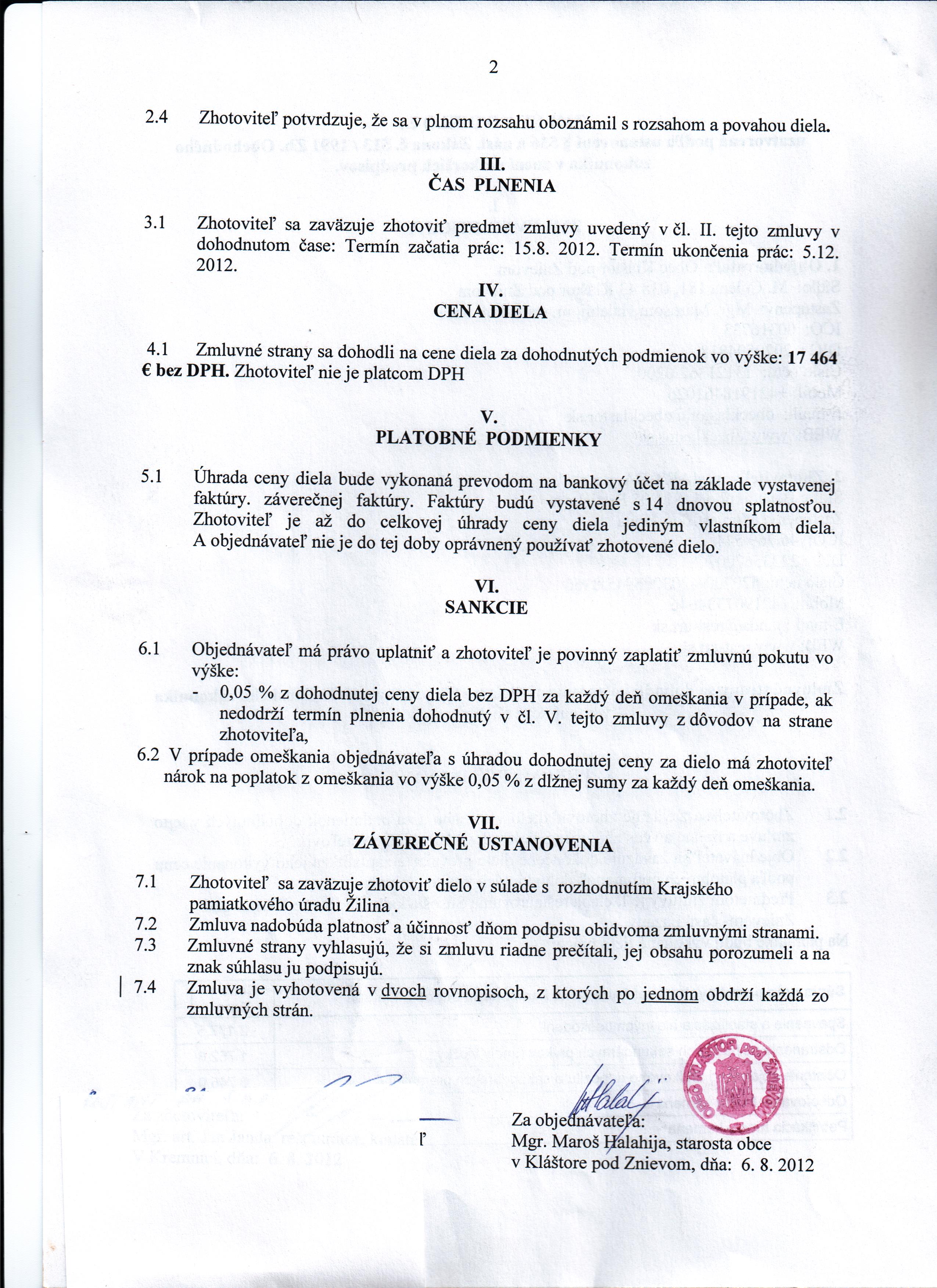 | Dátum zverejnenia zmluvy: | 6.8.2012 |