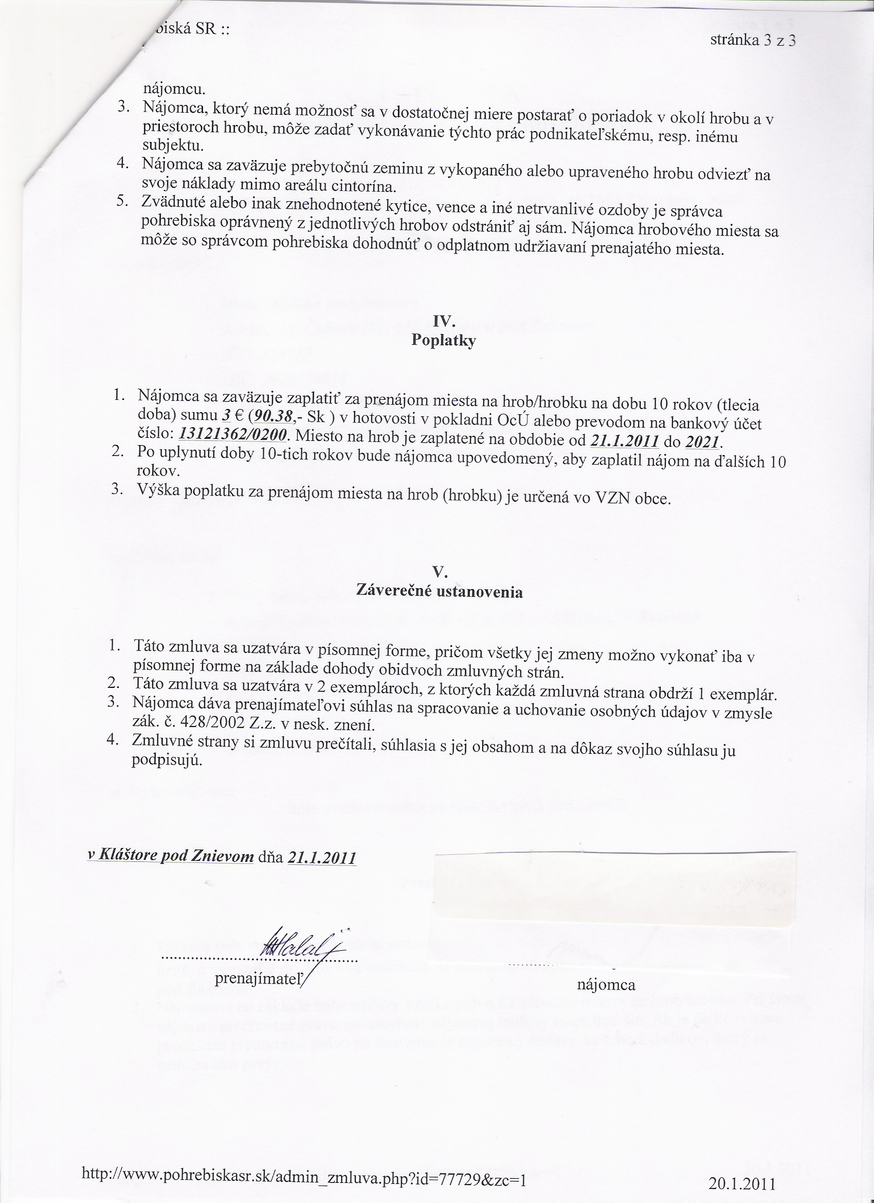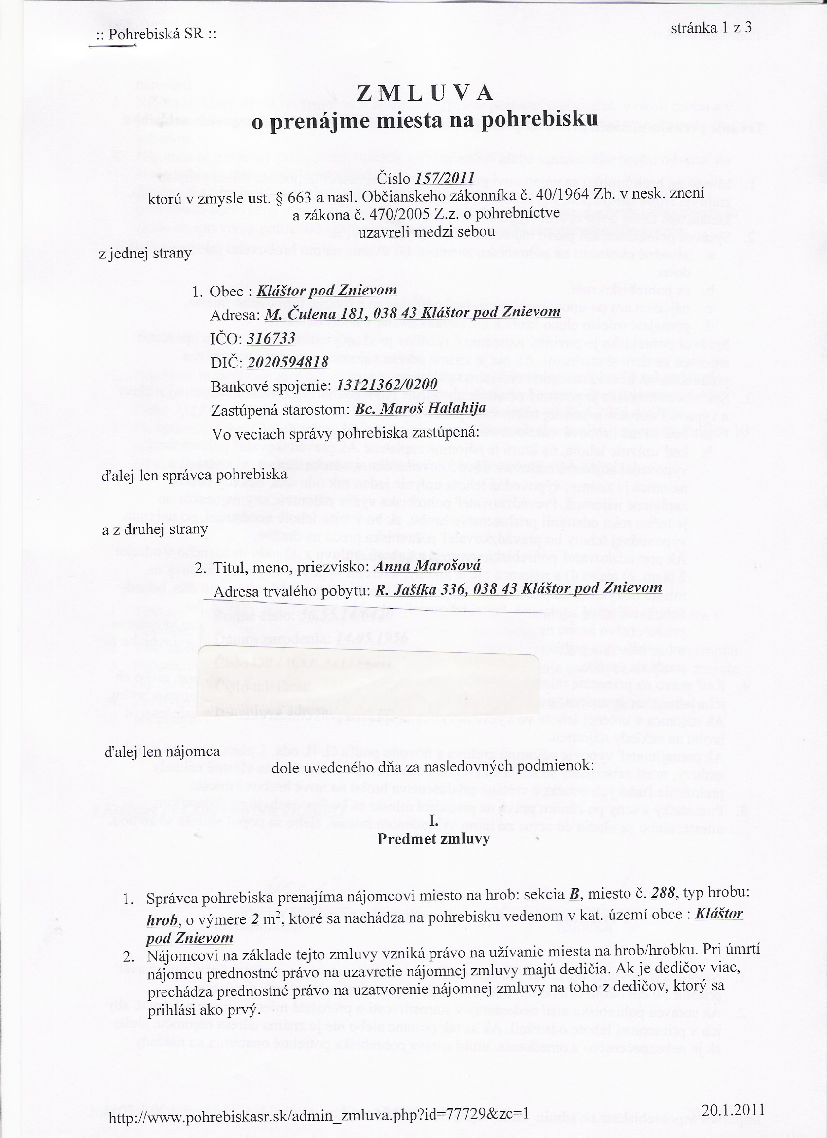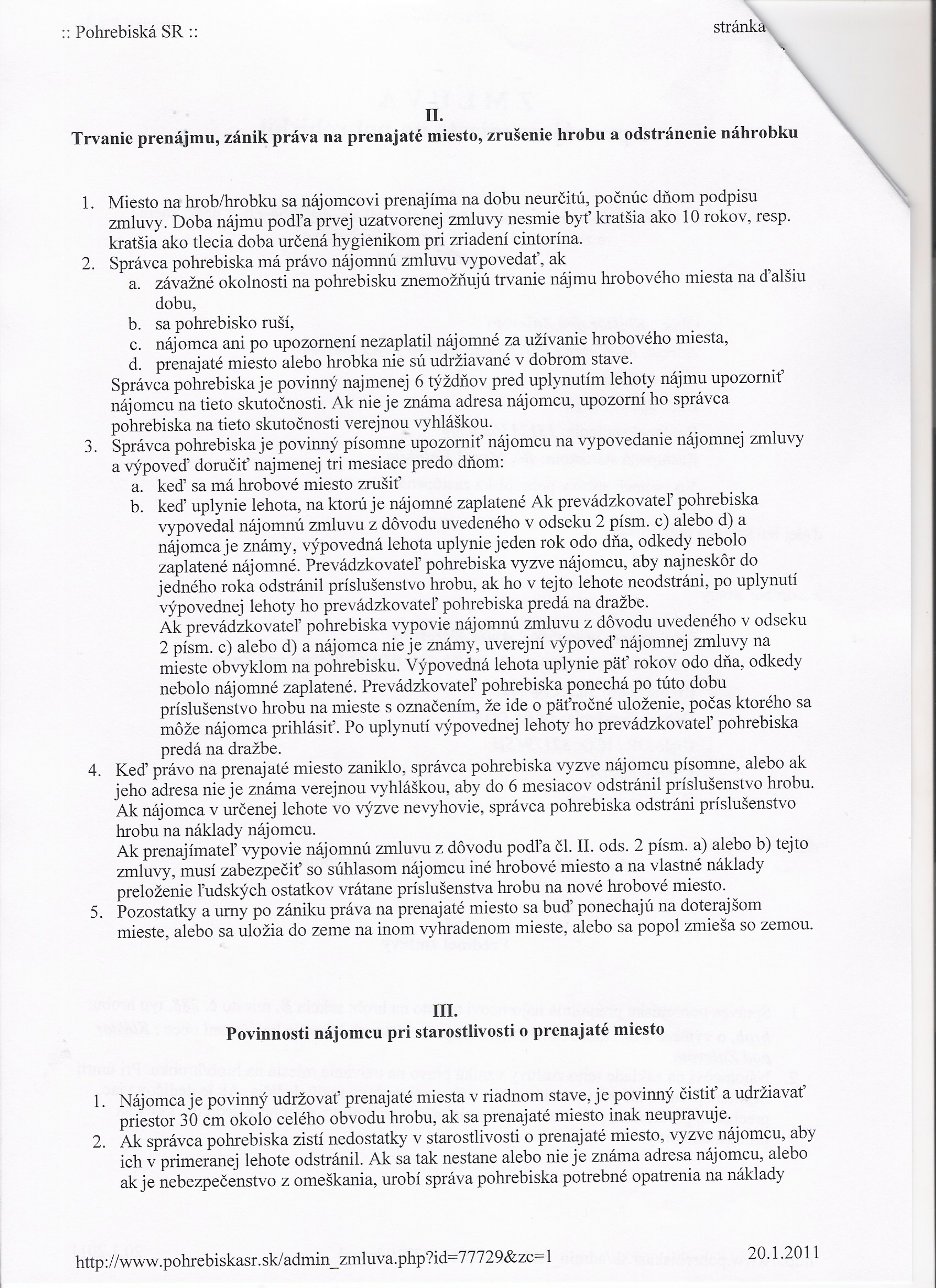| Názov: | Zmluva o prenájme miesta na pohrebisku |