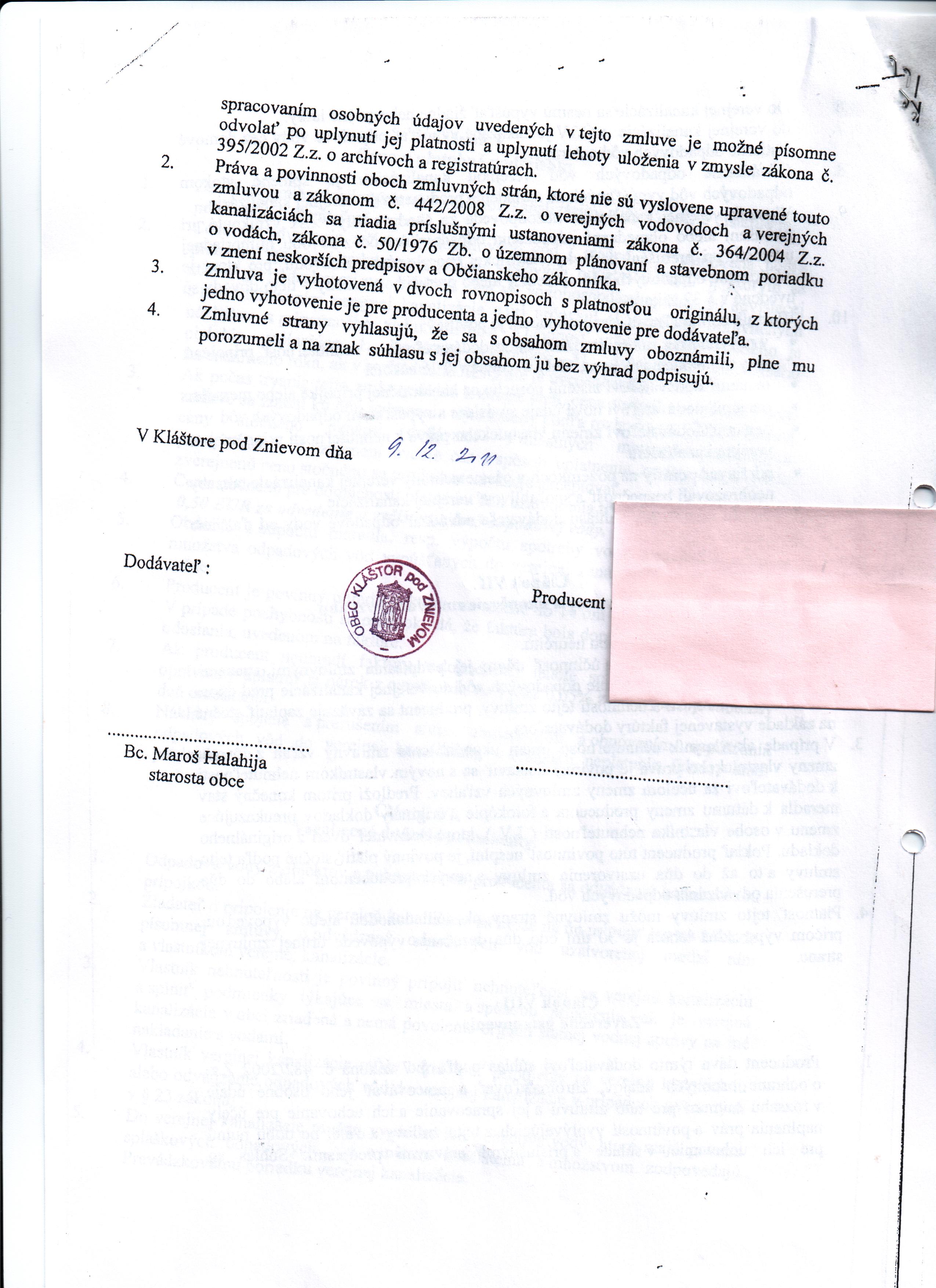 211/ 2013Obec Kláštor pod ZnievomZmluva o verejných vodovodoch a verejných kanalizáciach 0,00 €5.12.2013nestanovený