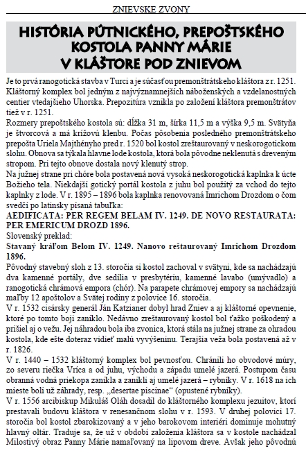 Text: Dagmar Bágeľová s použitím literatúry Súpis pamiatok na Slovensku - II. zväzok a Kláštor pod Znievom dôveryhodné miesto