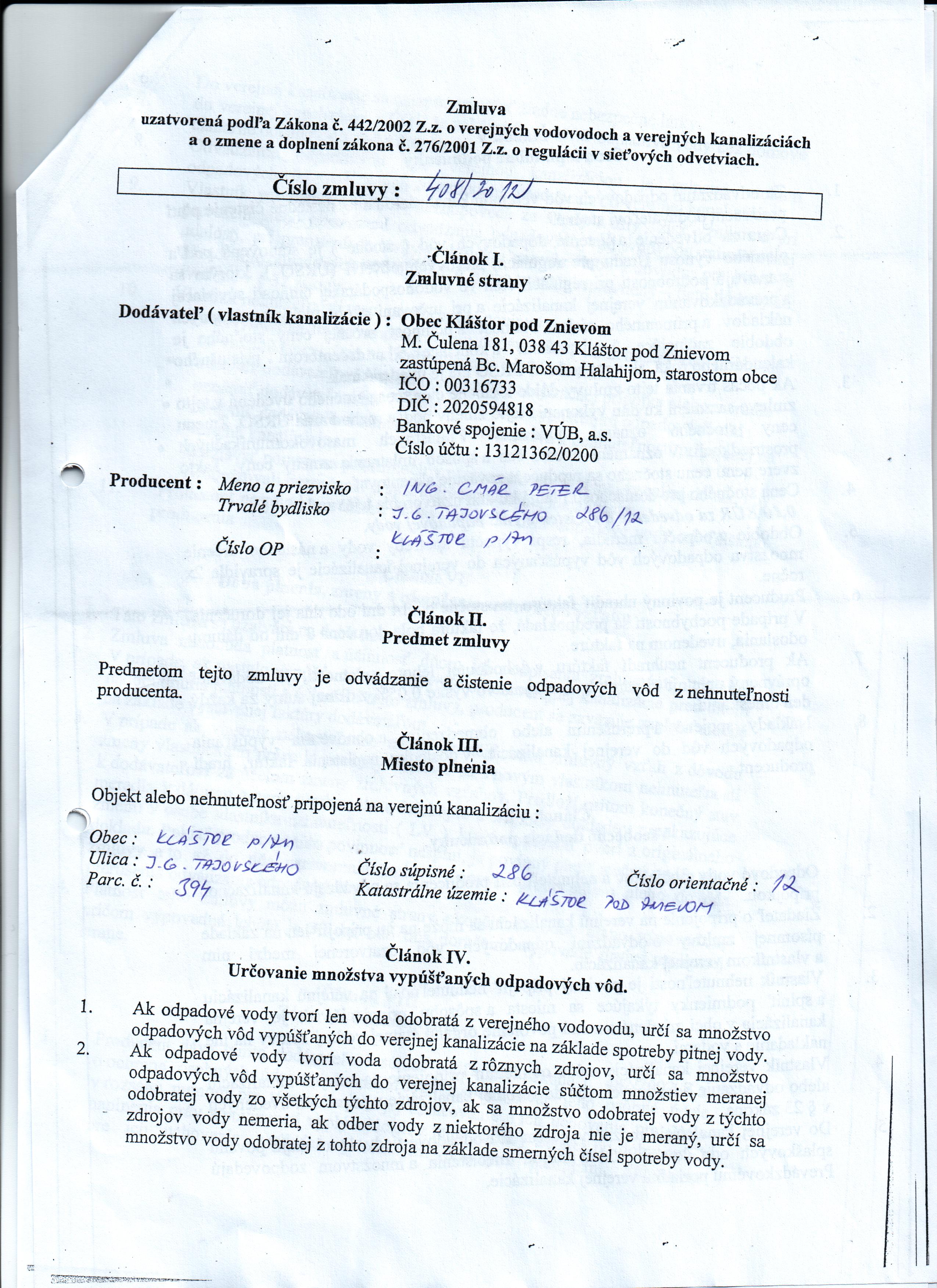 | Názov: | Zmluva o verejných vodovodoch a verejných kanalizáciách |