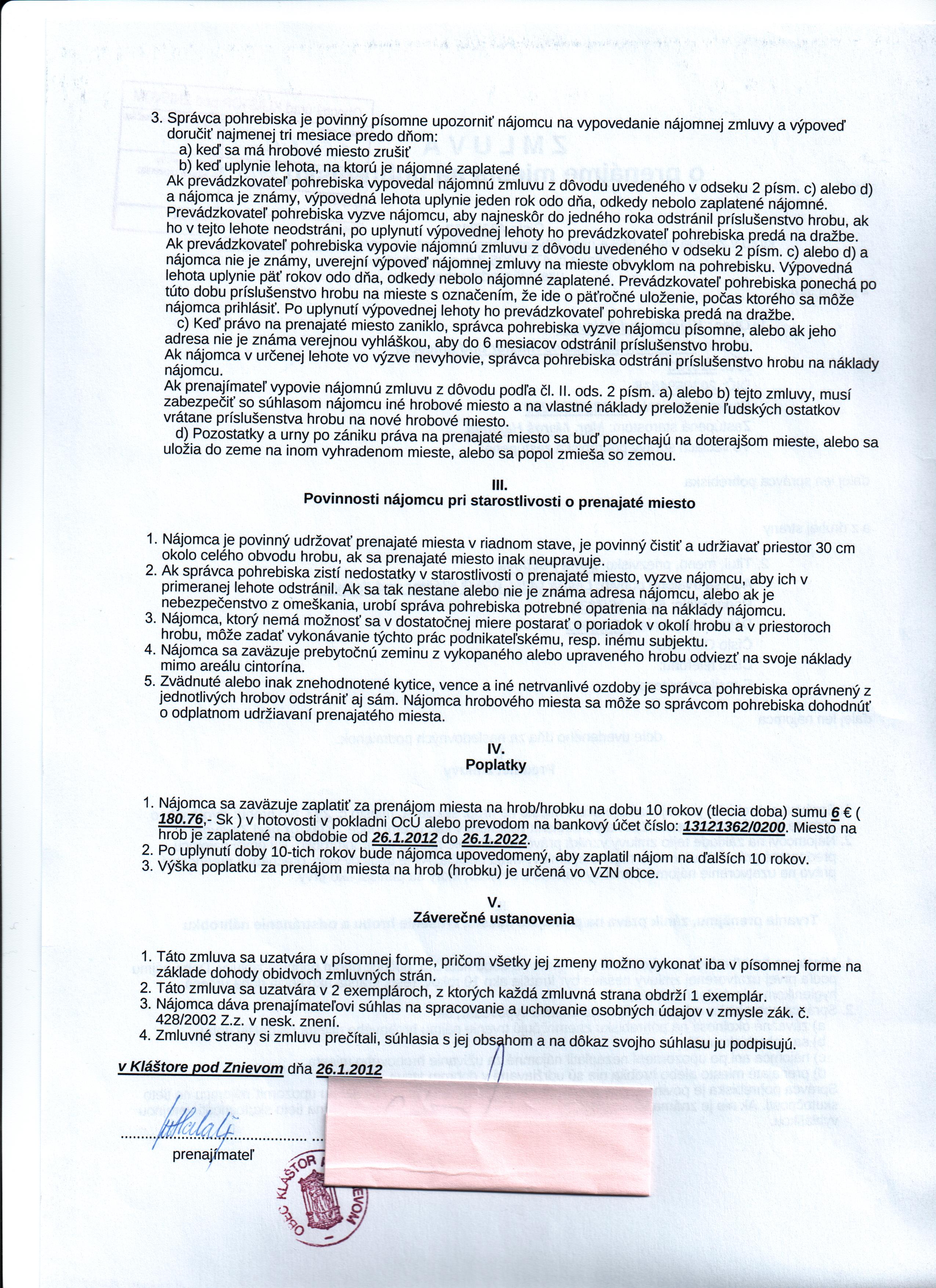 | Názov: | Zmluva o prenájme miesta na pohrebisku |