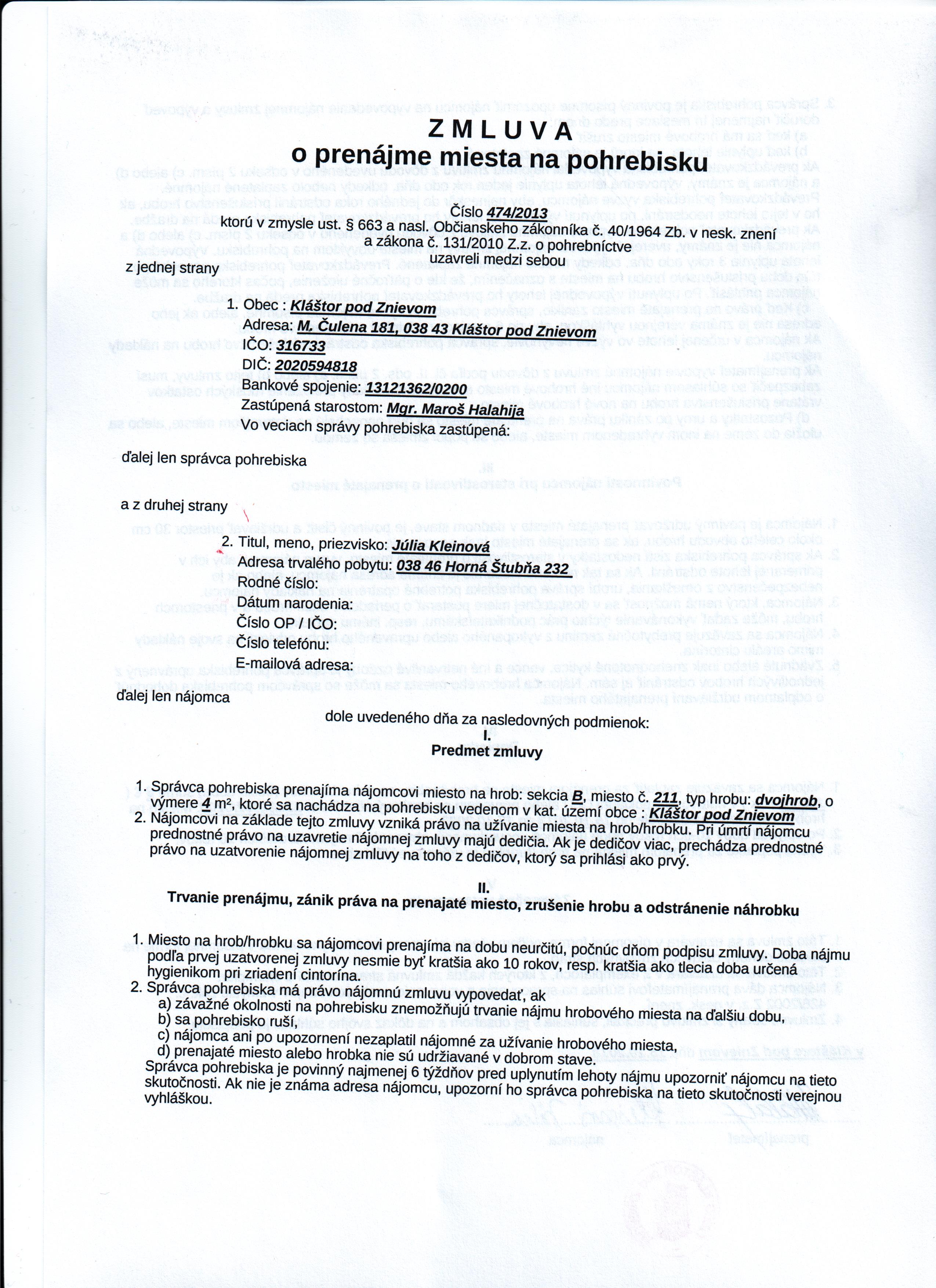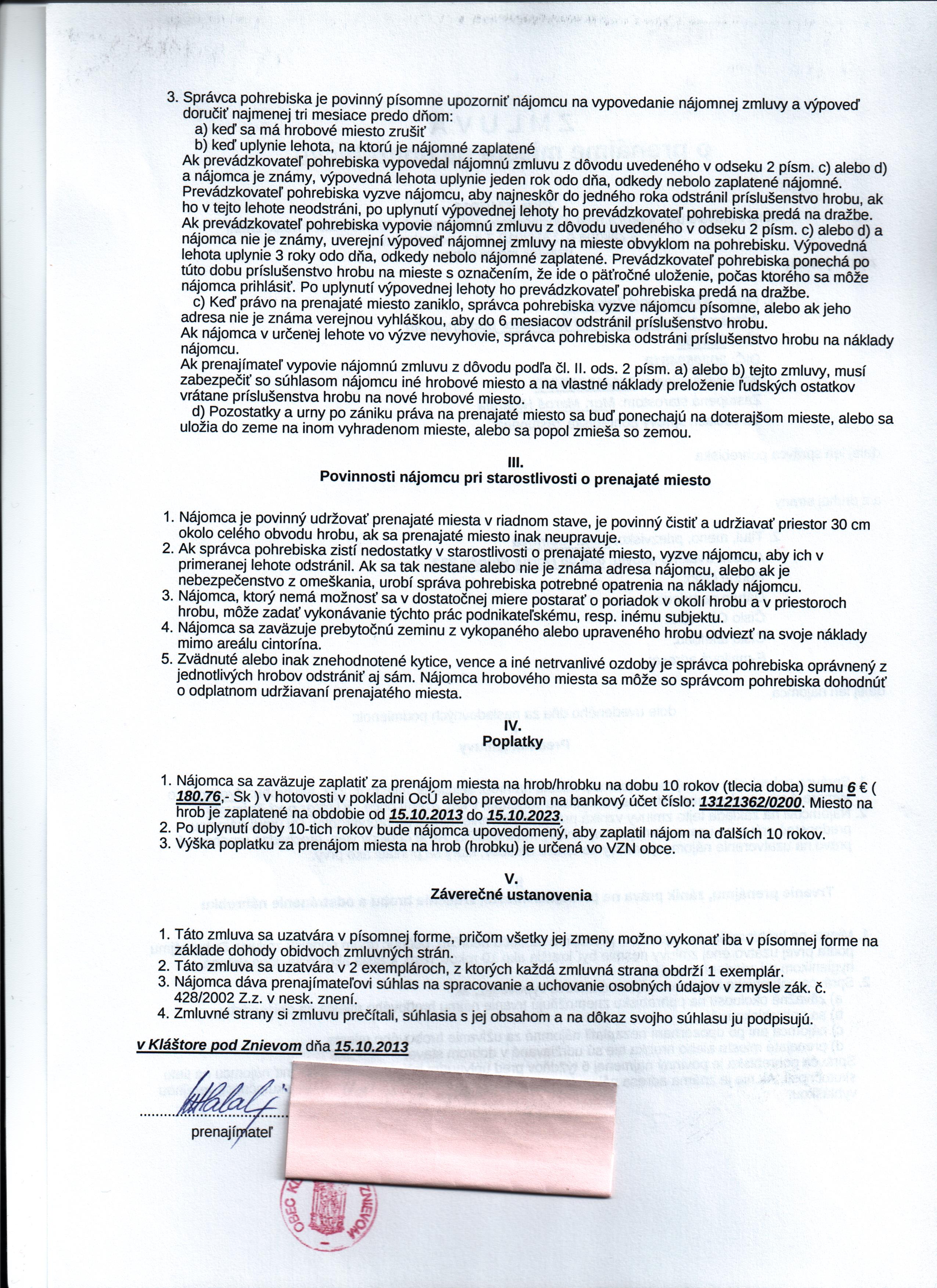 Názov:Zmluva o prenájme miesta na pohrebisku