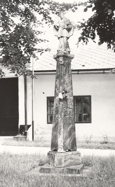 Socha sv. Jána Nepomuckého, barokovo-klasicistická z roku 1833. Stojí na vyššom štíhlom trojhrannom ihlanci, ktorého steny sú kanelované (majúce ozdoby v podobe žliabkov). V strede ihlanca sú klasicistické rozety. Socha je umiestnená pri hlavnej ceste v blízkosti Prícestného kríža a Trojičného stĺpu. Sochy sv. Jána Nepomuckého sa umiestňovali pri riekach, potokoch, mostoch, lebo v ľudových predstavách bol svätec patrónom vôd a všetkých zamestnaní spojených s vodnými tokmi. Ovplyvňoval dážď, zmierňoval povodne, preto bol i ochrancom hospodárstva a úrody. Bol strážcom ľudskej cti proti ohováraniu a nactiutŕhaniu a patrónom bezpečného putovania a šťastného návratu.