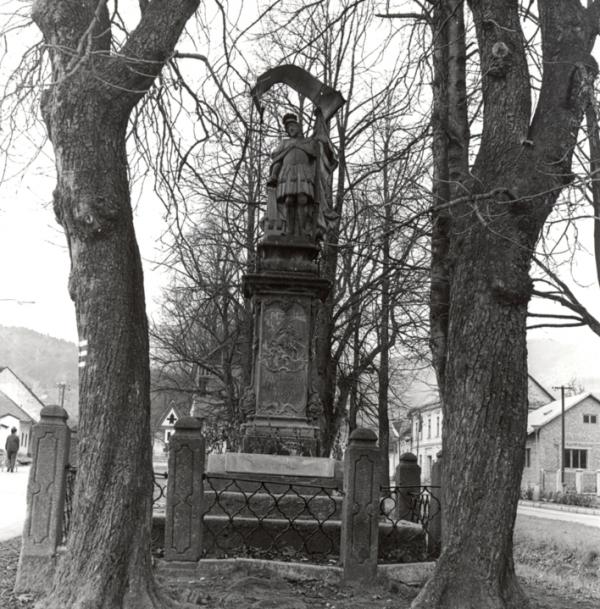 Socha sv. Floriána, rokoková z roku 1768. Na vysokom podstavci reliéf sv. Juraja s nápisom a rokajmi (plastický ozdobný prvok), z podstavca vyrastá stĺp, na ktorom je socha sv. Floriána. Stĺp so sochou je ohradený barokovou mrežou, nachádza sa v strede obce pri hlavnej ceste a patrí po rekonštrukcii medzi vzácne pamiatky. Svätý Florián držal stráž nad požiarnym nebezpečím, hasil požiare ľudskej zloby a nenávisti. Jeho sochy boli umiestňované na námestí, v uliciach, menšie sošky stáli vo výklenkoch striech (viac o sv. Floriánovi sa dočítate v časti záujmové spolky - dobrovoľní hasiči).