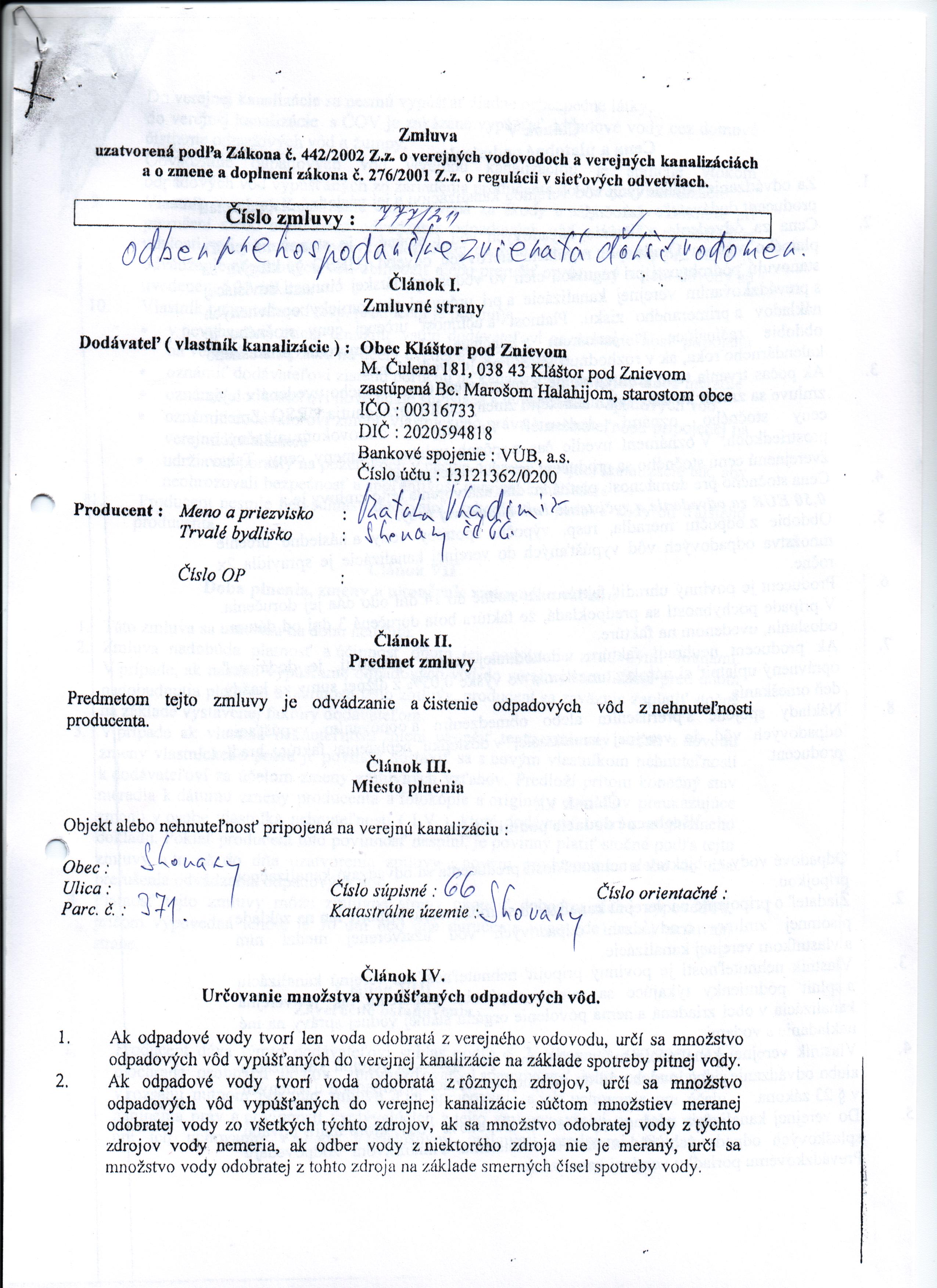 Názov:Zmluva o verejných vodovodoch a verejných kanalizáciách