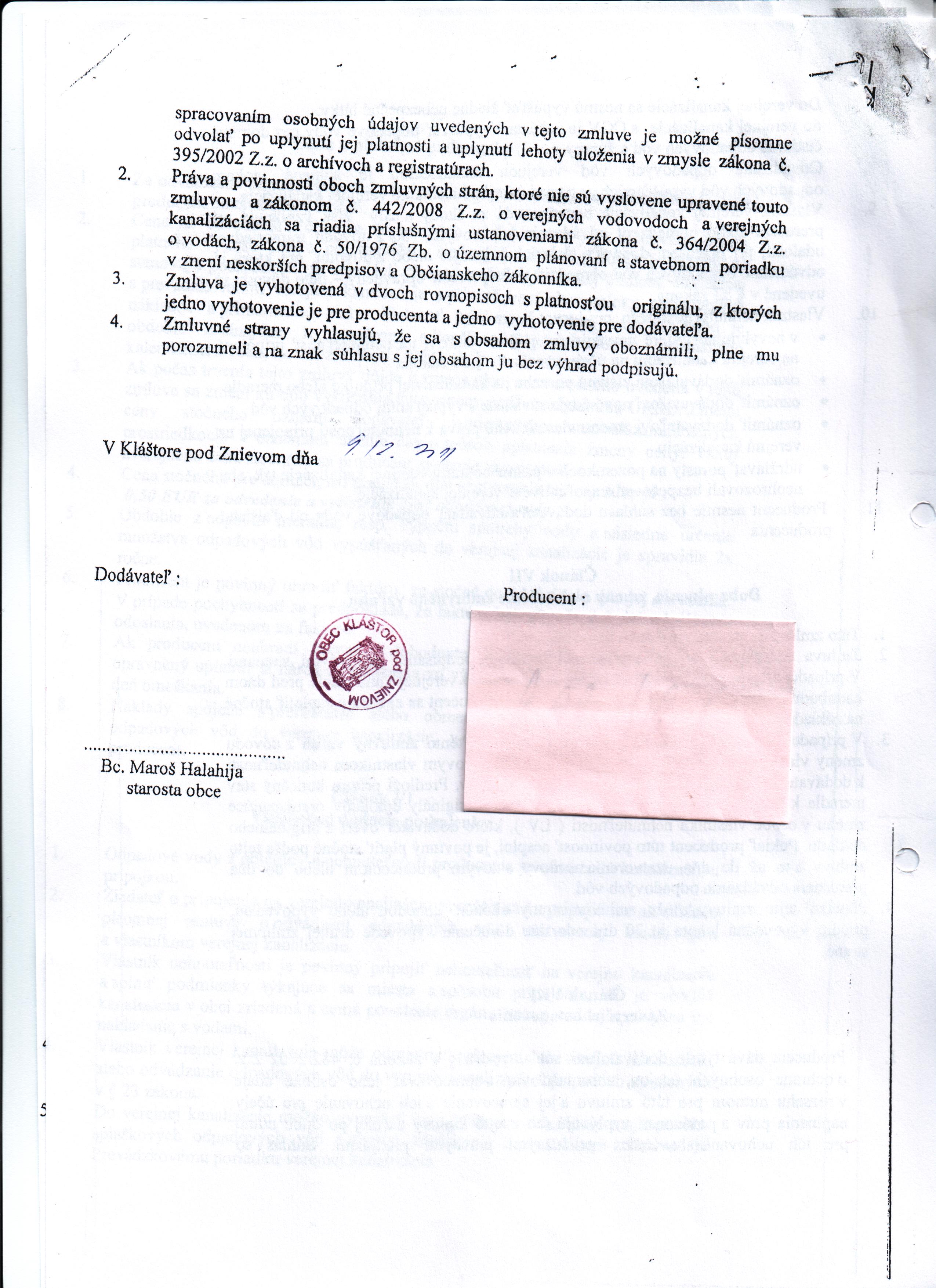 Zmluvy » subjekt: Obec Kláštor pod Znievom » rok: 2011