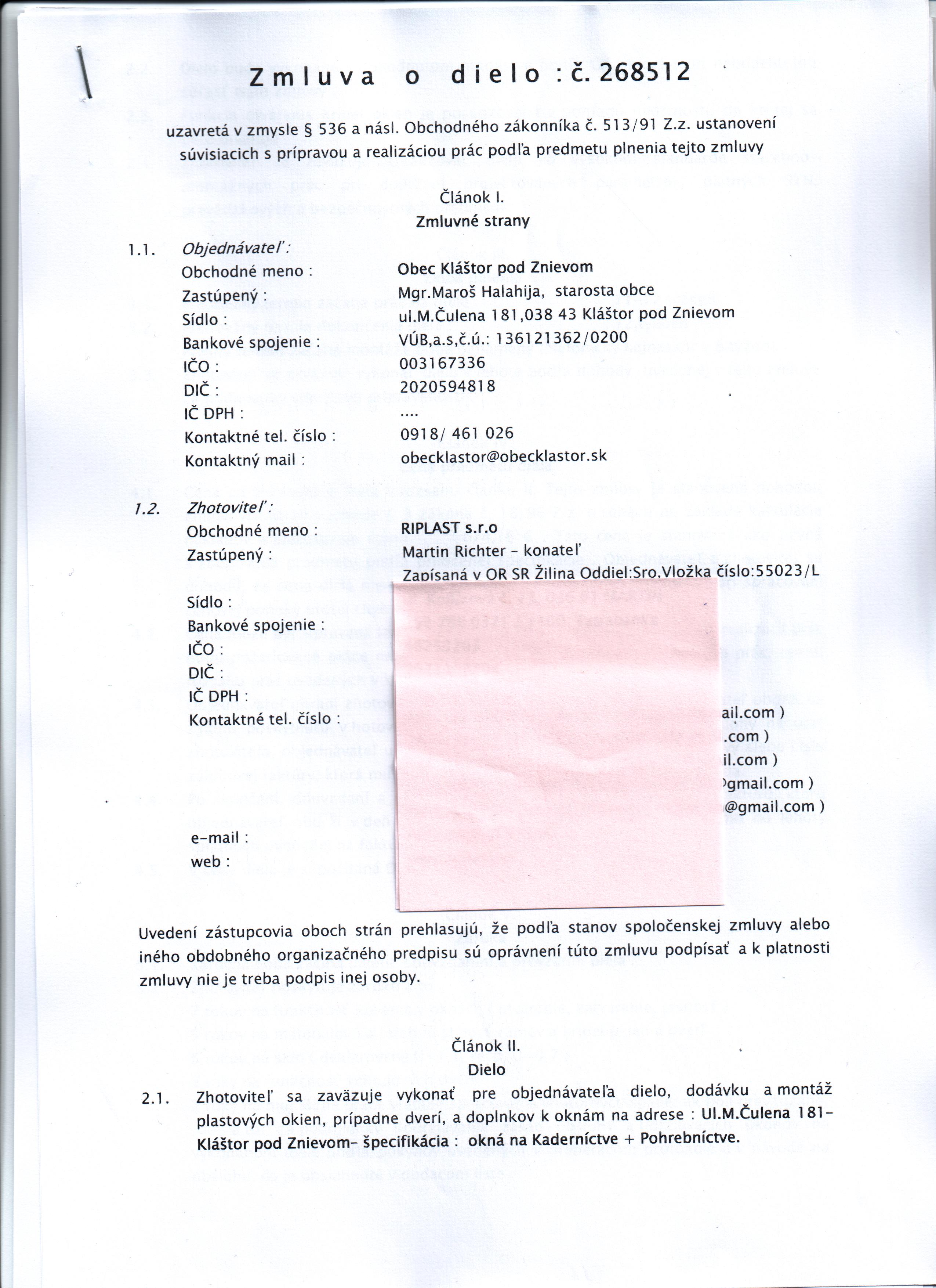 | Názov: | Zmluva o dielo č. 268512 |