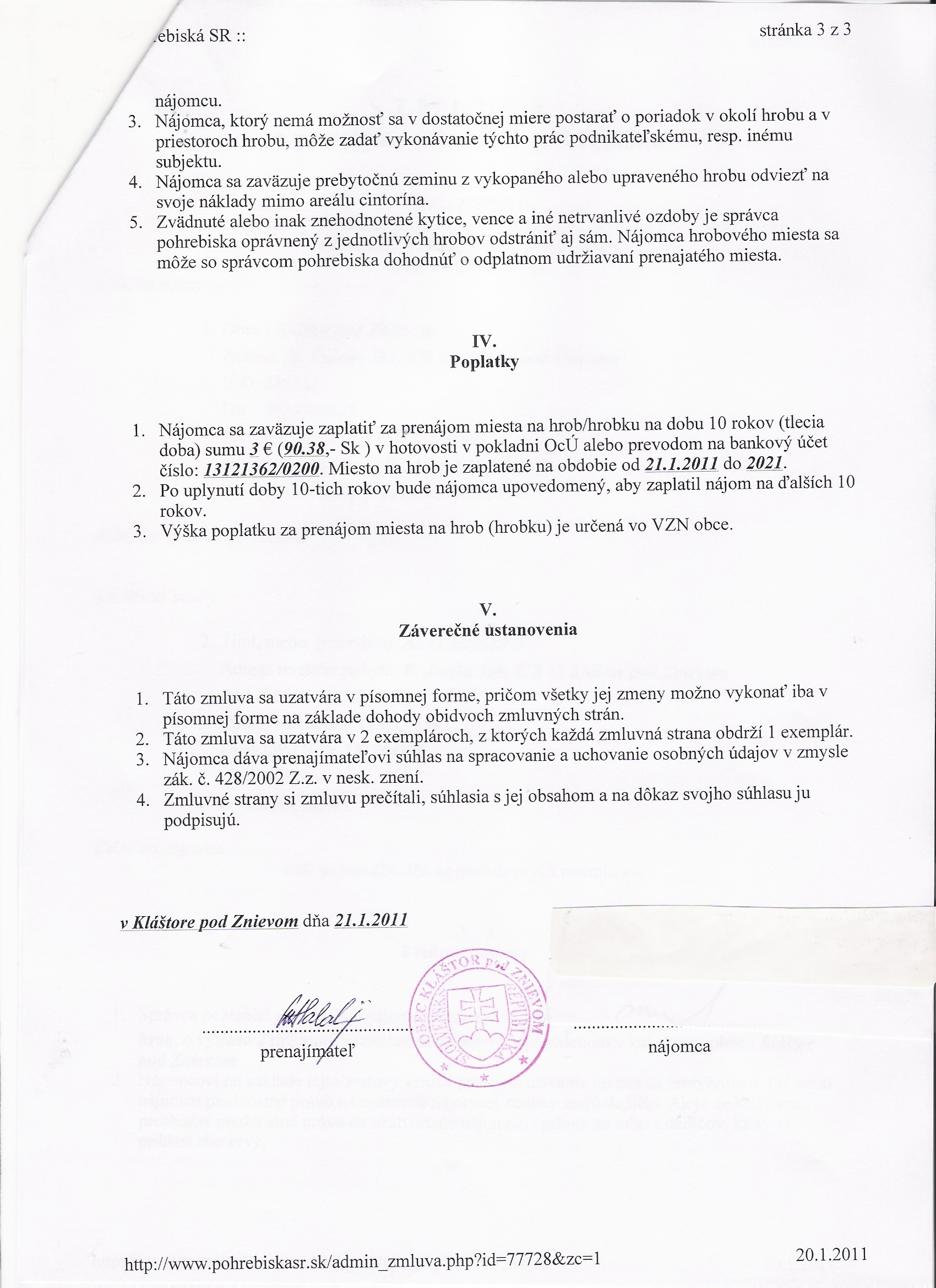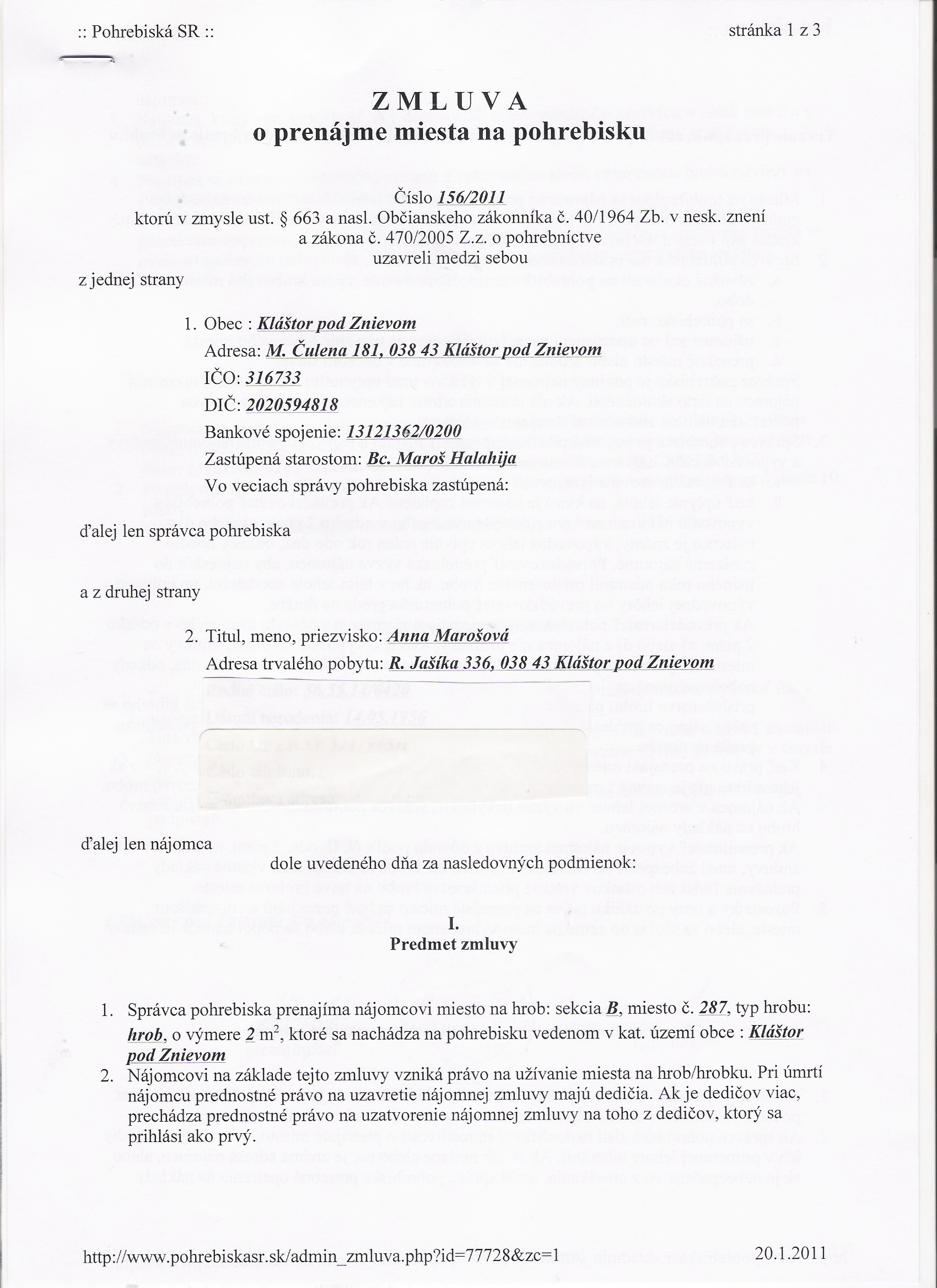 | Názov: | Zmluva o prenájme miesta na pohrebisku |