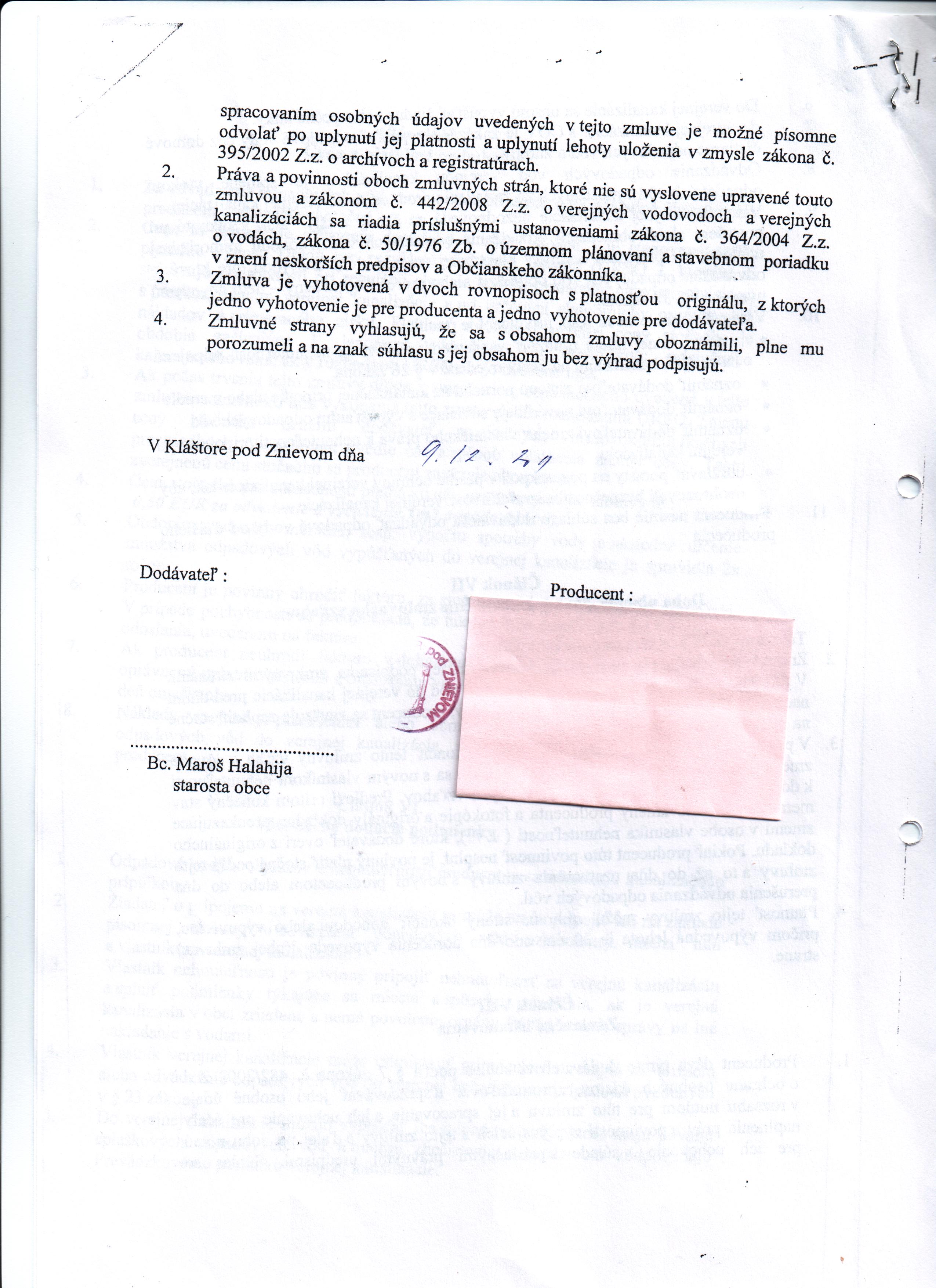 211/ 2013Obec Kláštor pod ZnievomZmluva o verejných vodovodoch a verejných kanalizáciach 0,00 €5.12.2013nestanovený