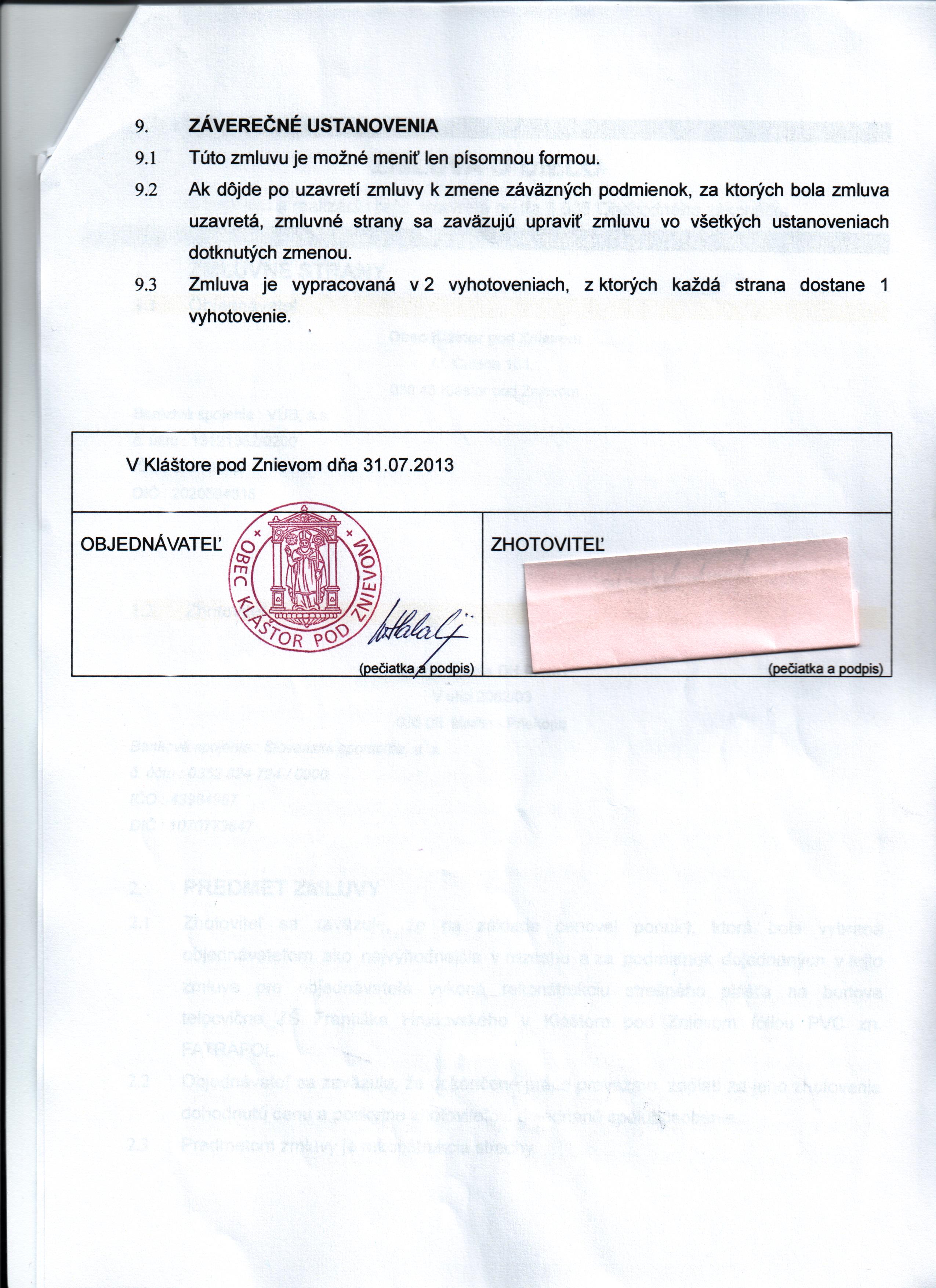 | Dátum uzavretia zmluvy: | 31.7.2013 |