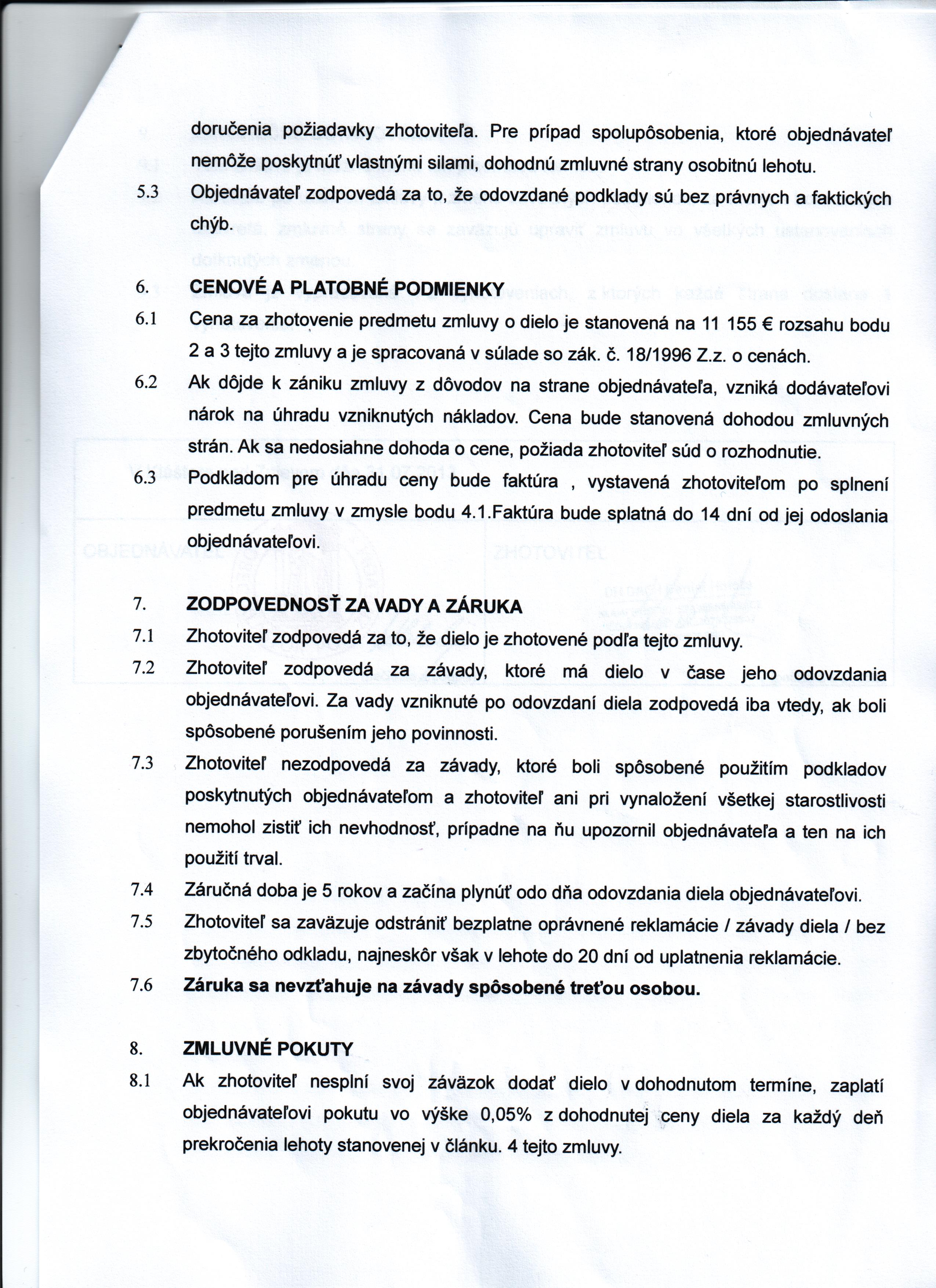 | 5/2011 | Martin Richter - RIPLAST | Zmluva o dielo | 18 827,22 € | 28.6.2011 | nestanovený | |