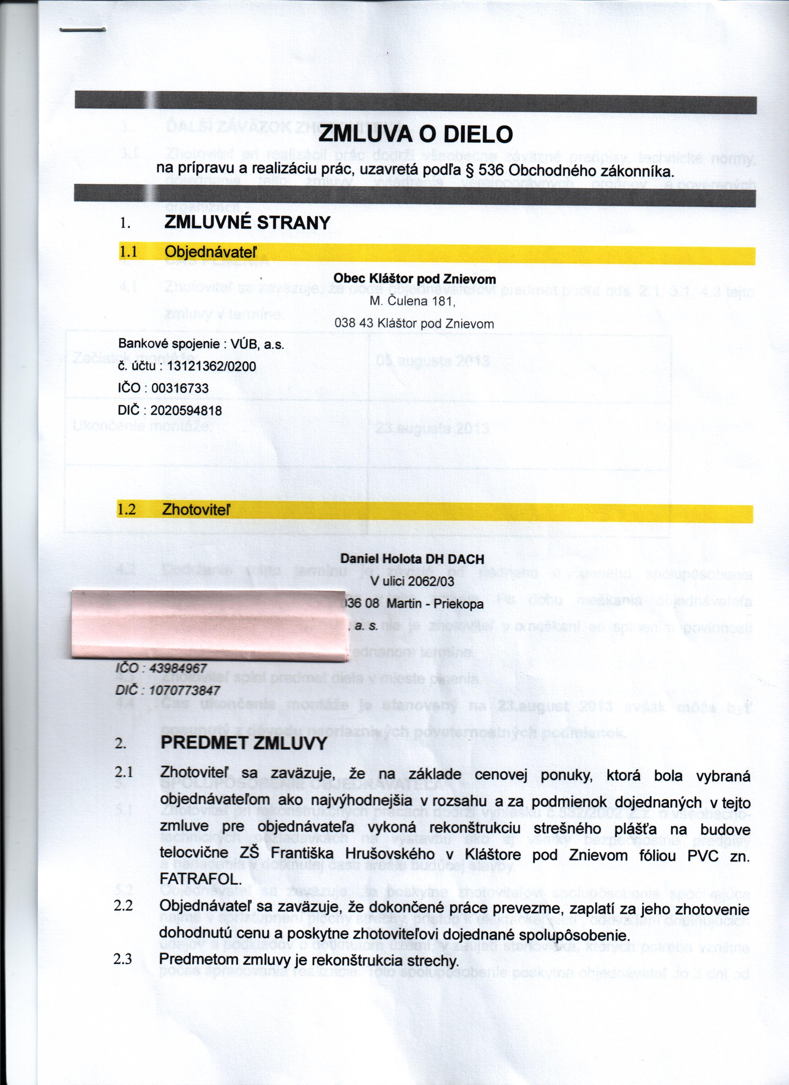 | Názov: | Zmluva o dielo |