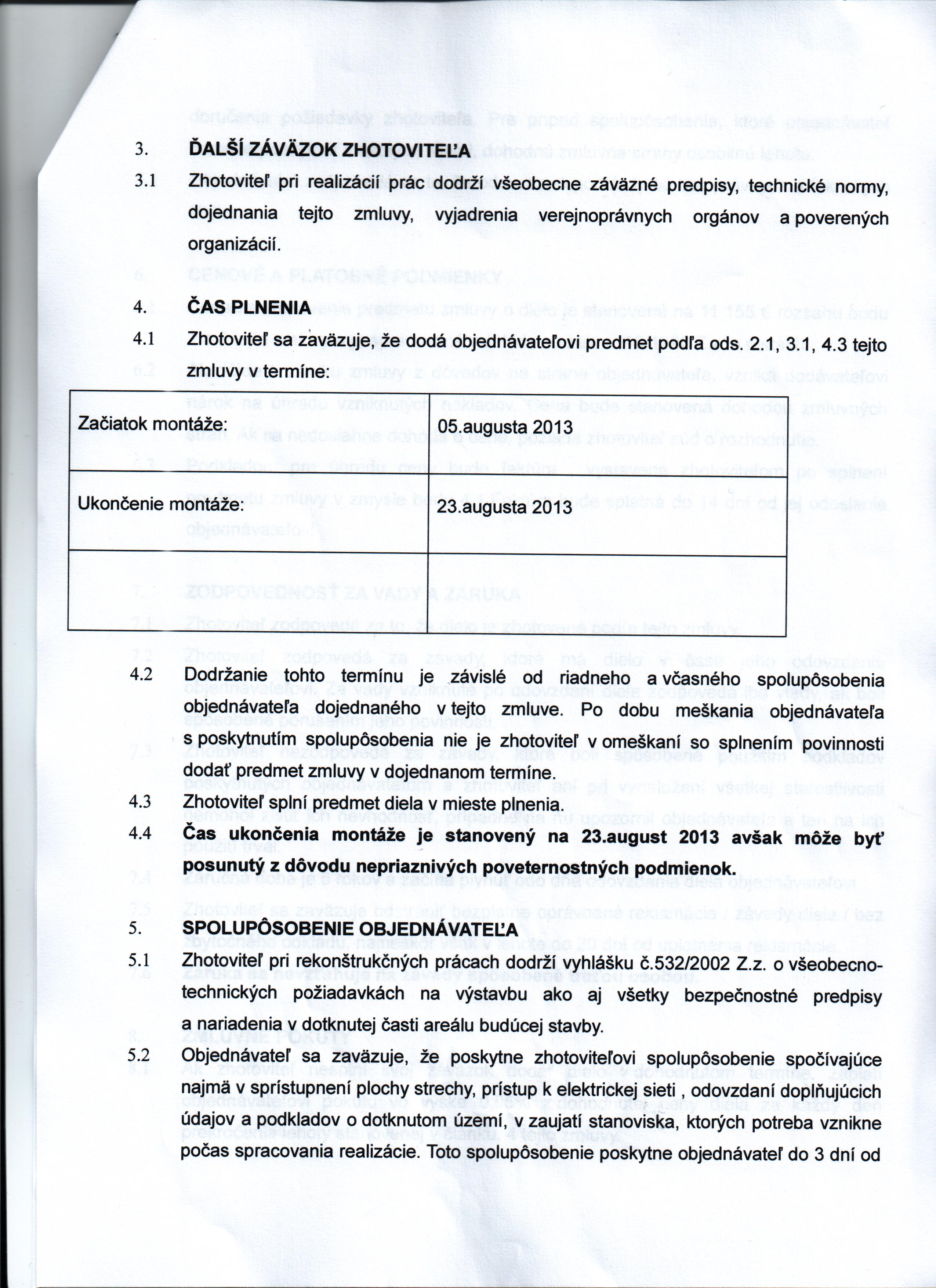 | Dátum účinnosti zmluvy: | 31.7.2013 |