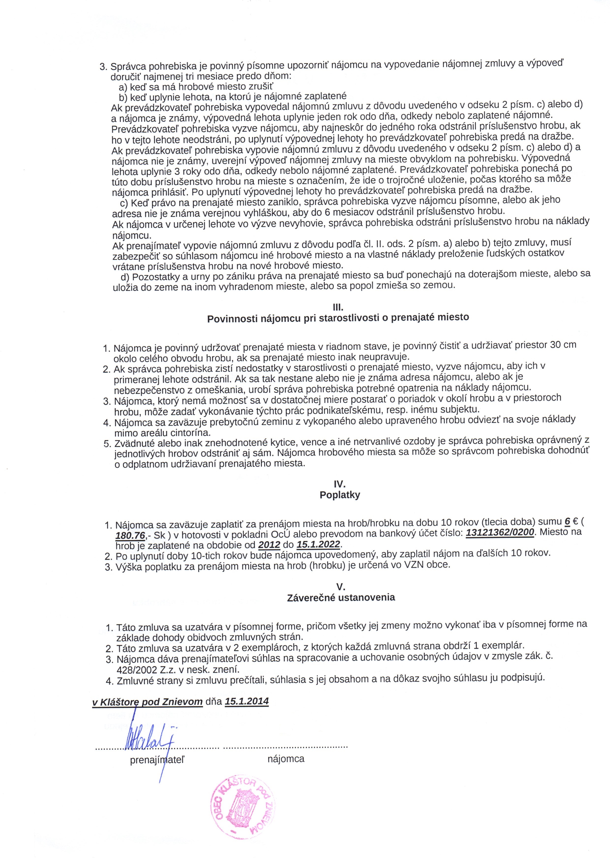| Názov: | Zmluva o prenájme miesta na pohrebisku |