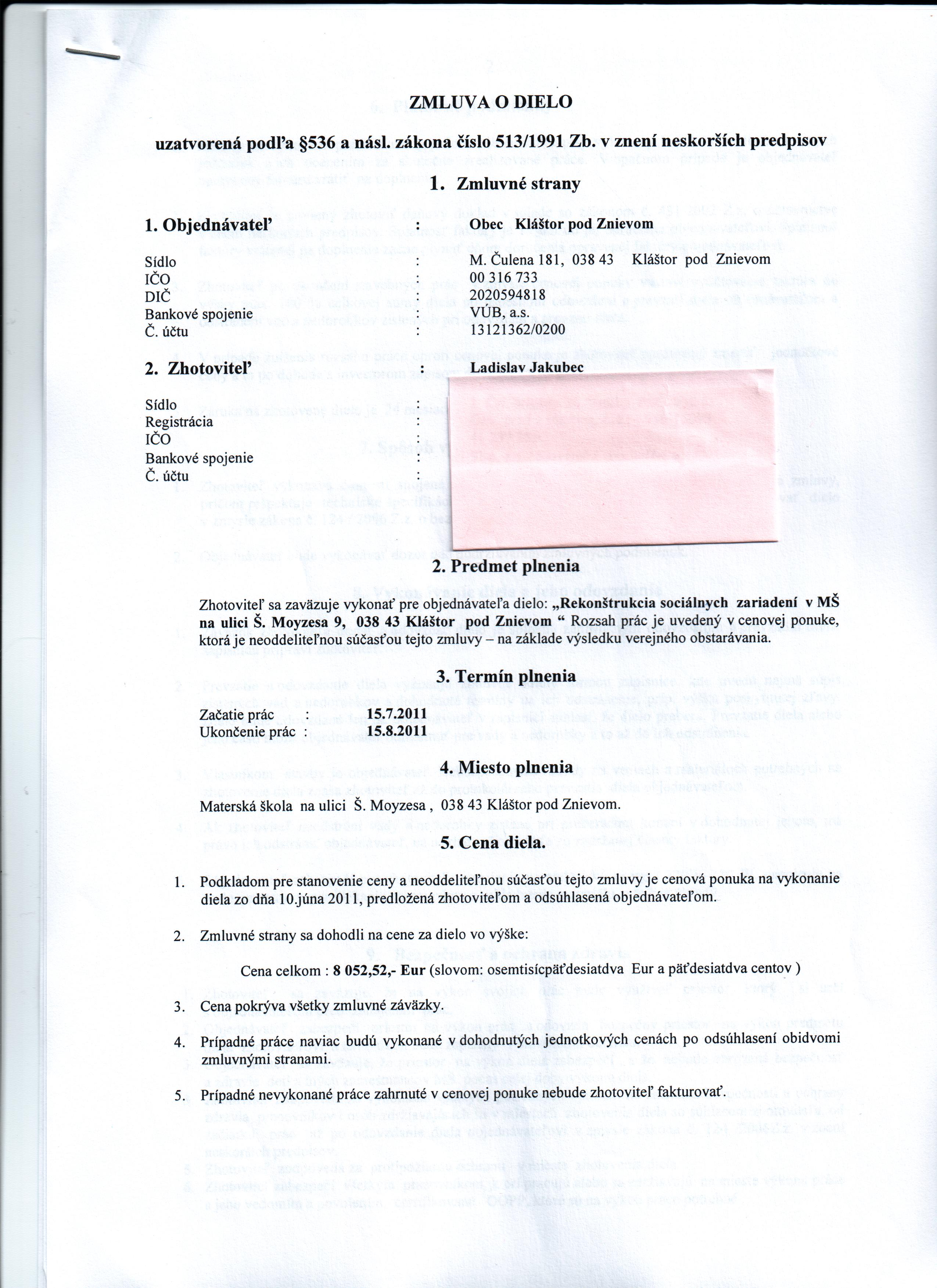 | Zmluvná strana 2: | Ladislav Jakubec |