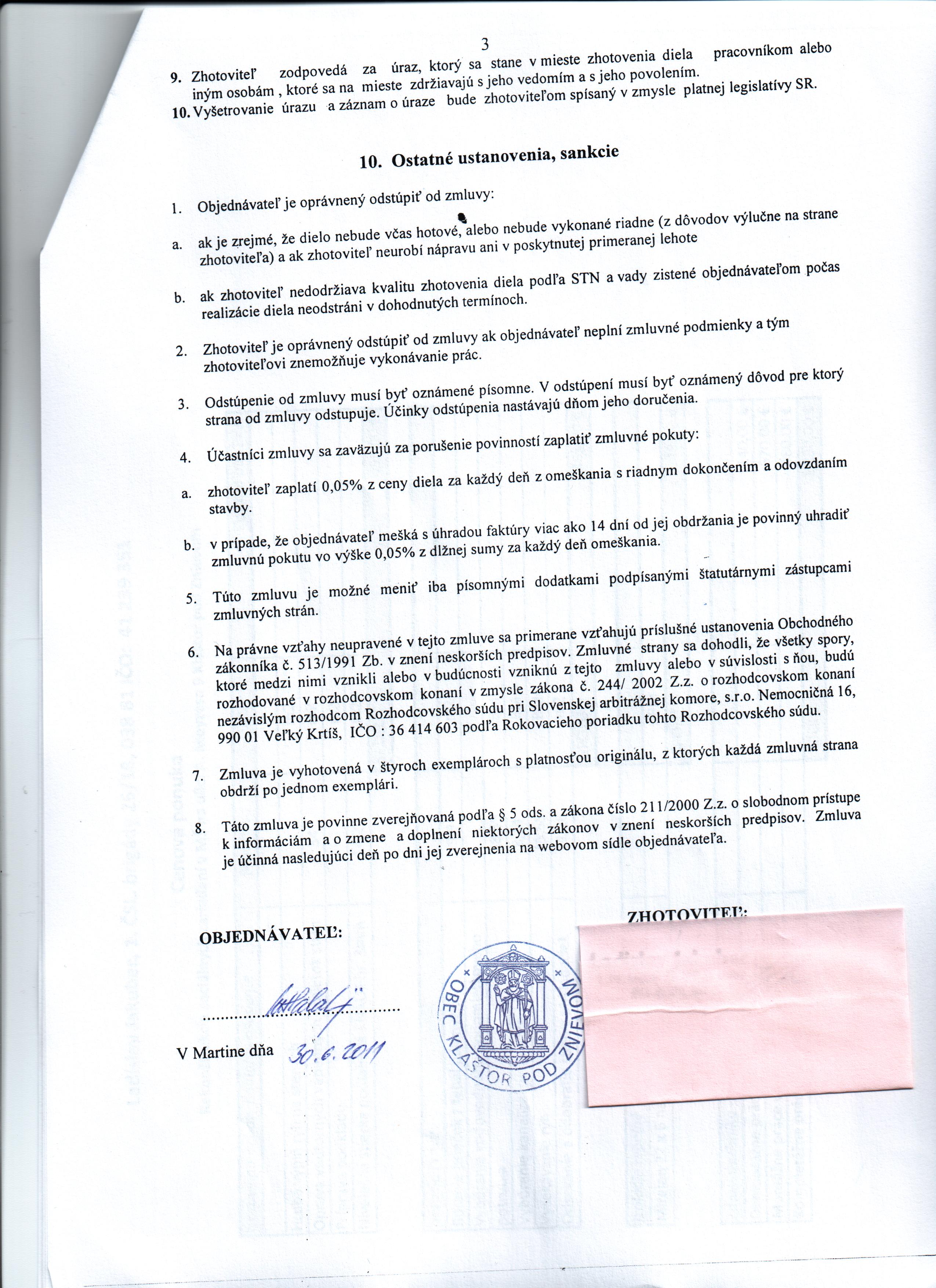 | Dátum uzavretia zmluvy: | 30.6.2011 |