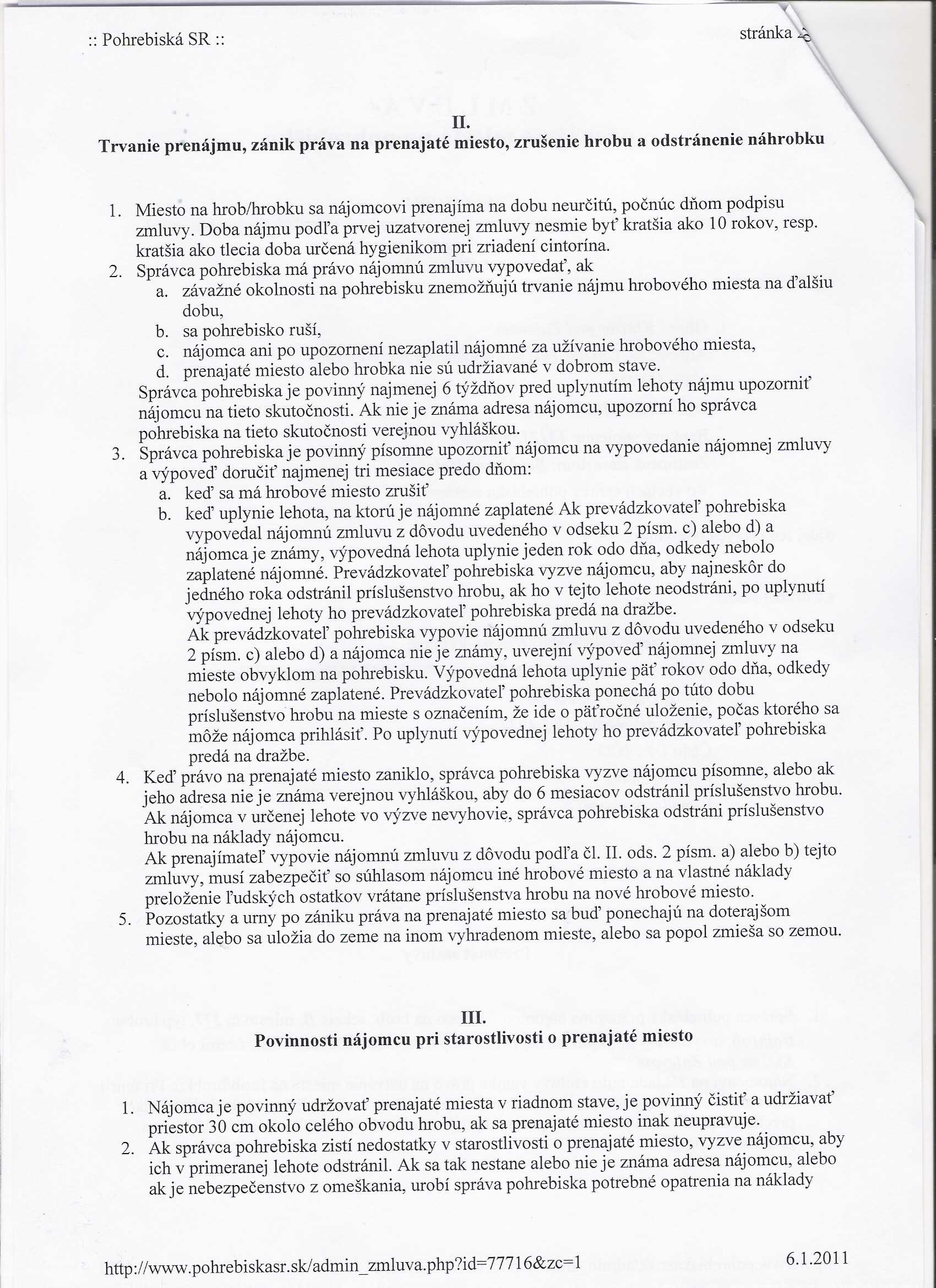 | Názov: | Zmluva o prenájme miesta na pohrebisku |