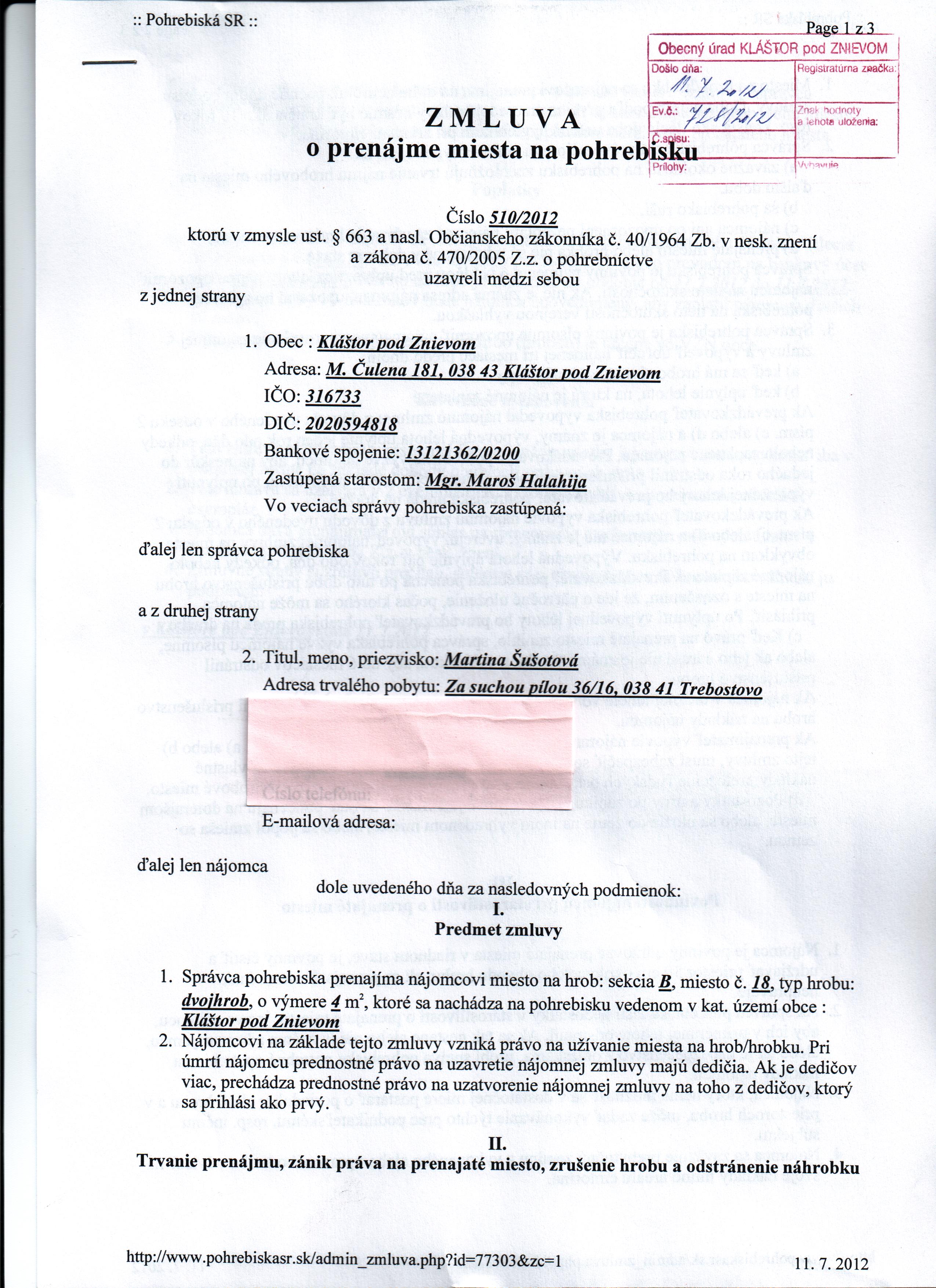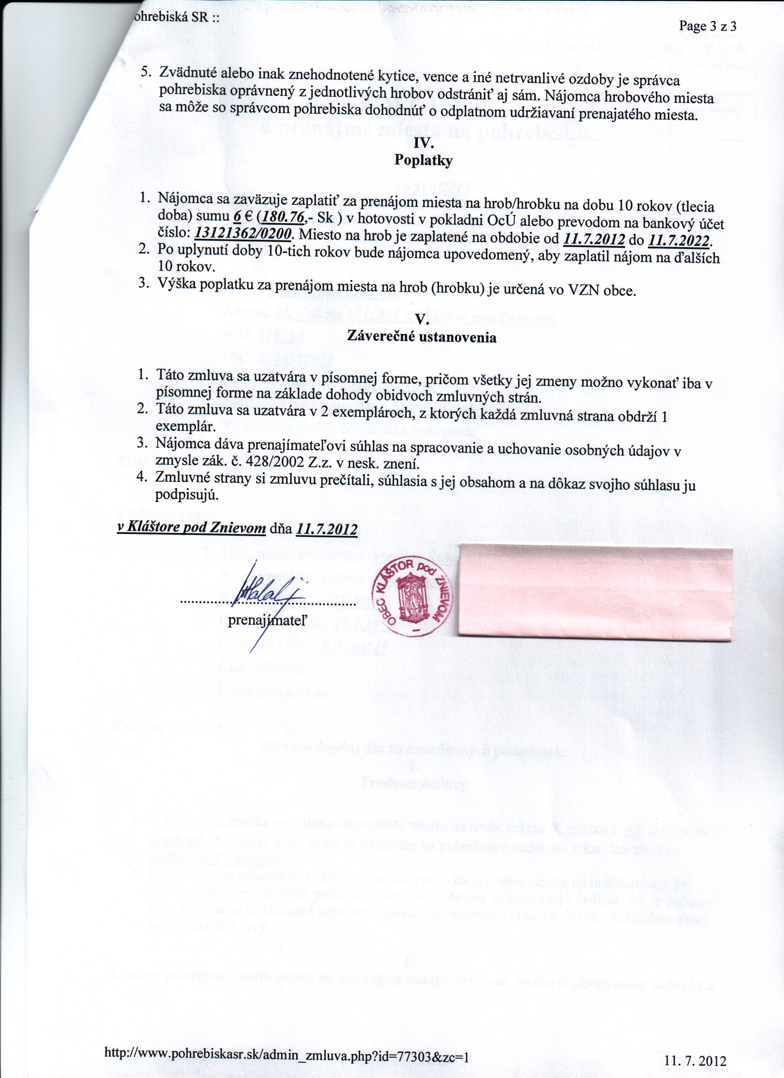 Názov:Zmluva o prenájme miesta na pohrebisku
