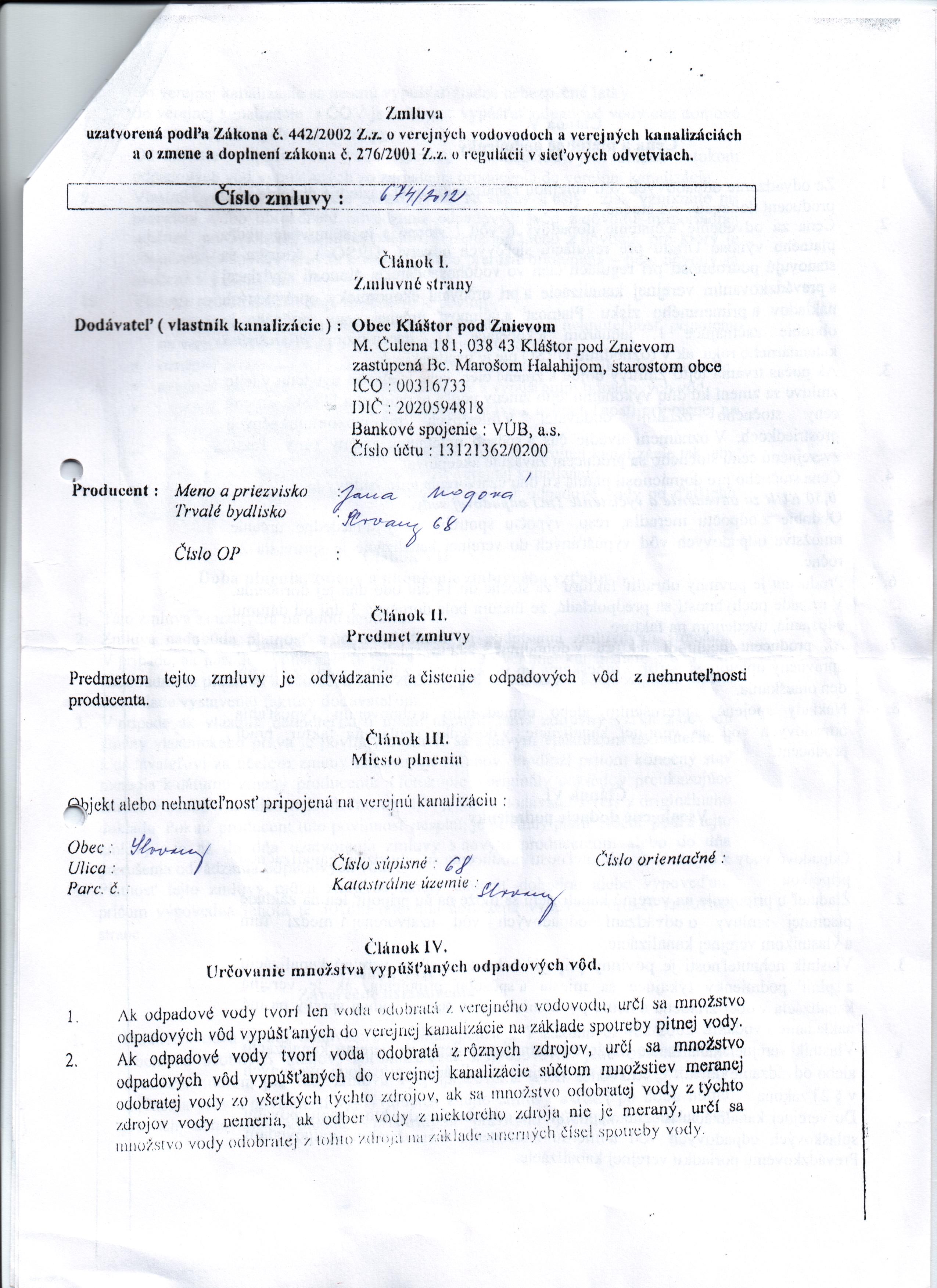 417/2013Obec Kláštor pod ZnievomZmluva o verejných vodovodoch a verejných kanalizáciach 0,00 €5.12.2013nestanovený