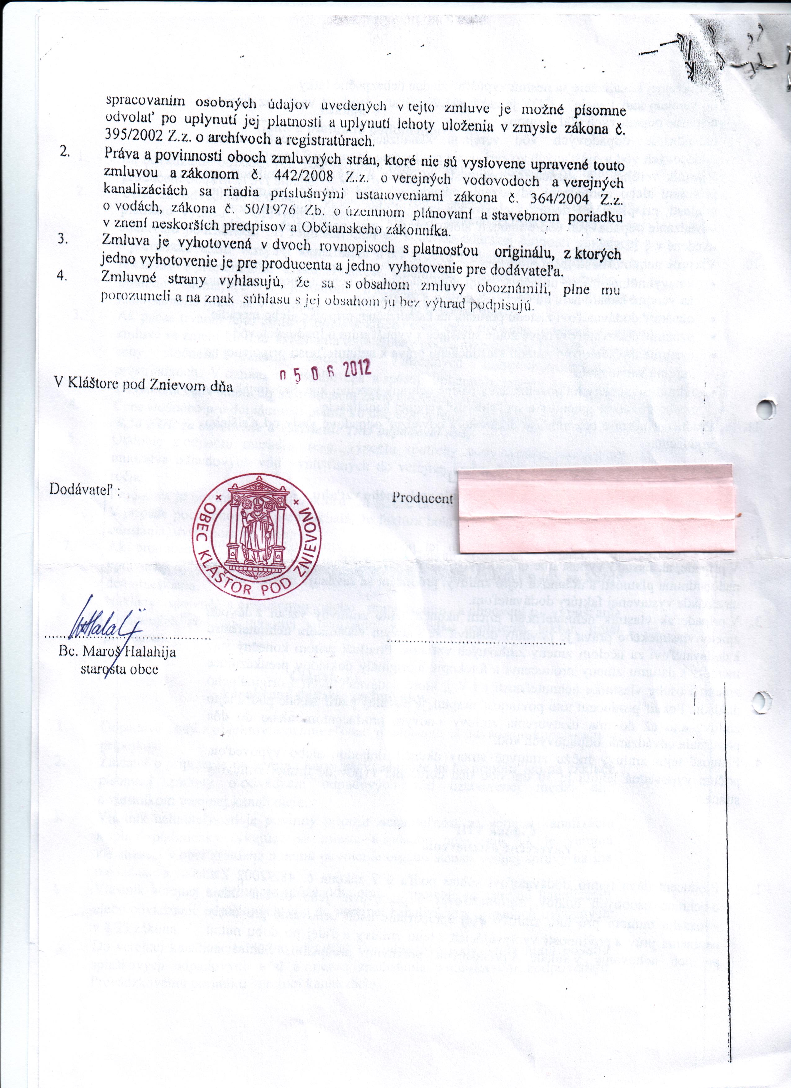 Zmluvy » subjekt: Obec Kláštor pod Znievom » rok: 2012