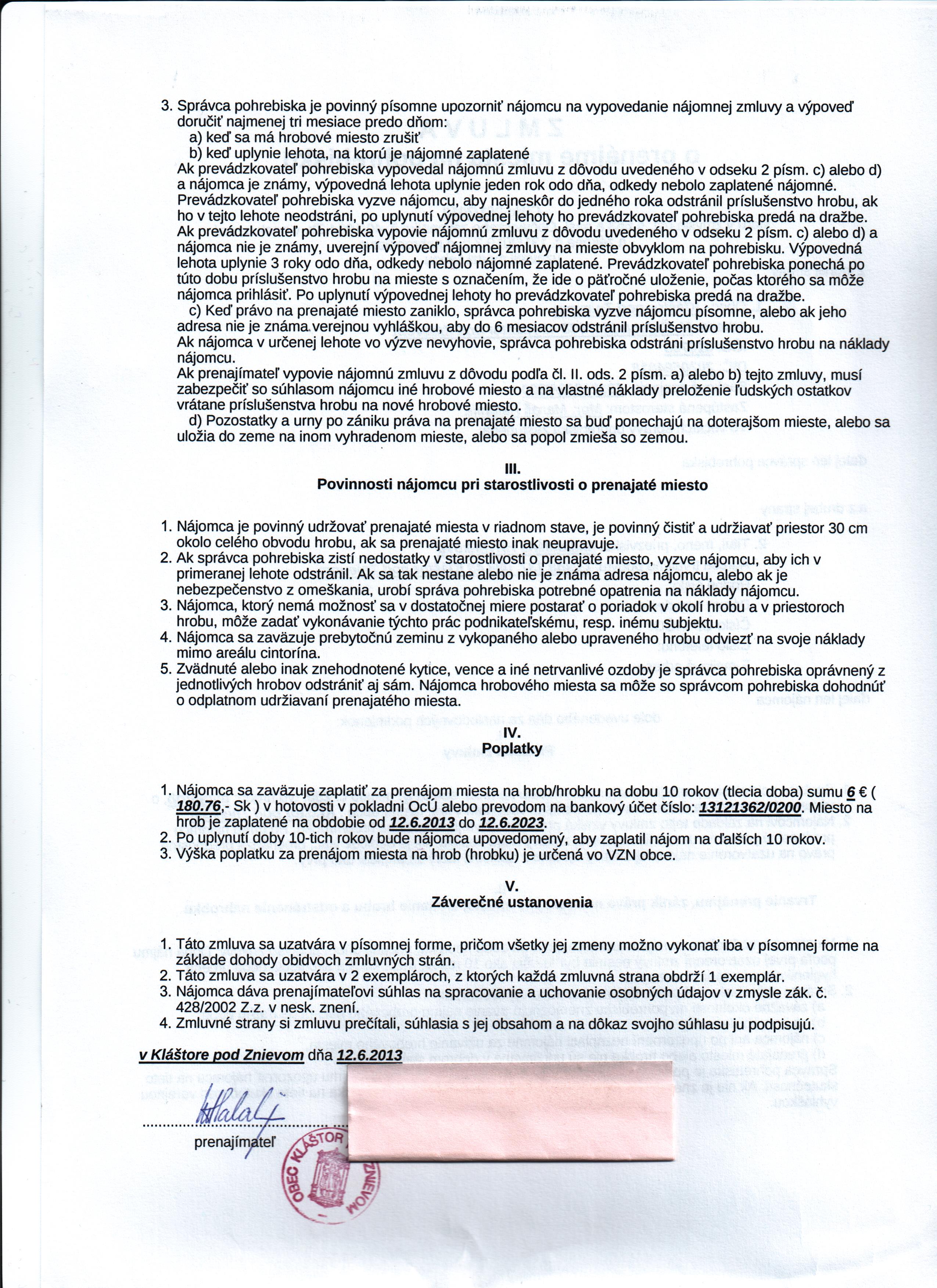 Názov:Zmluva o prenájme miesta na pohrebisku