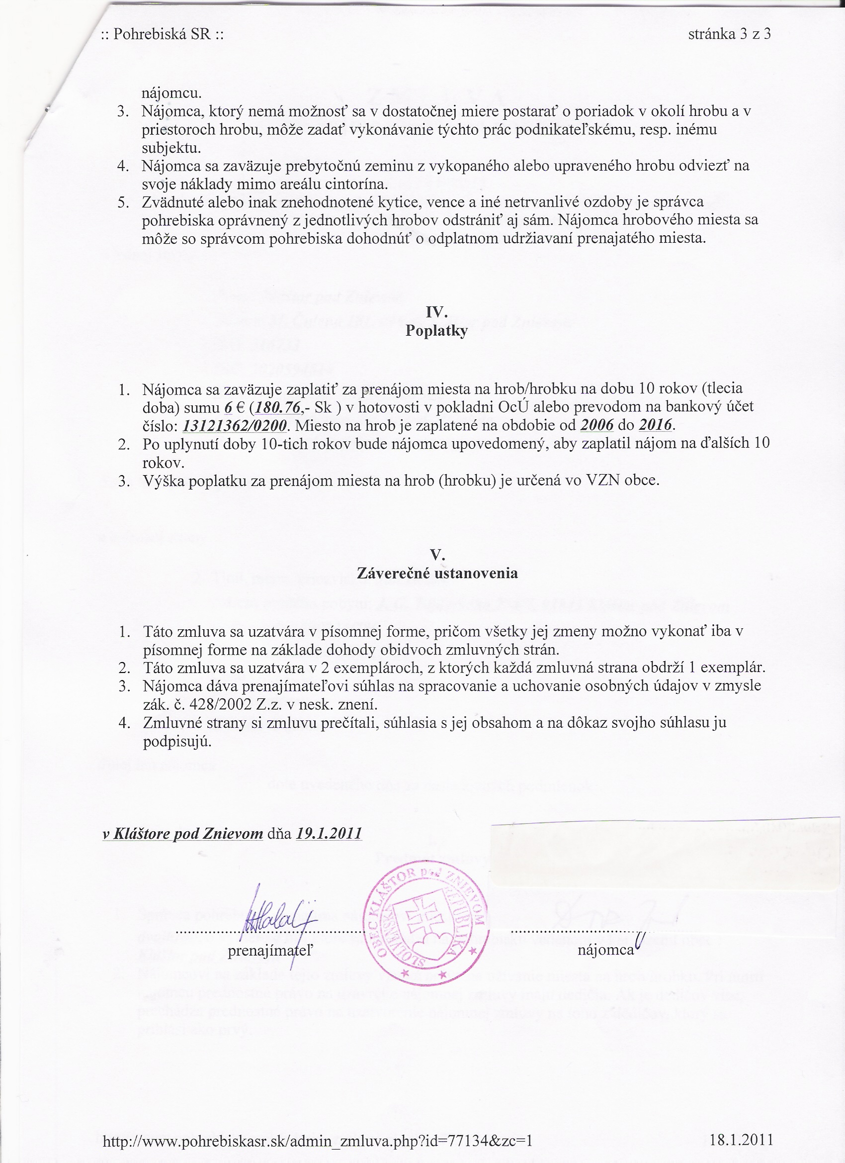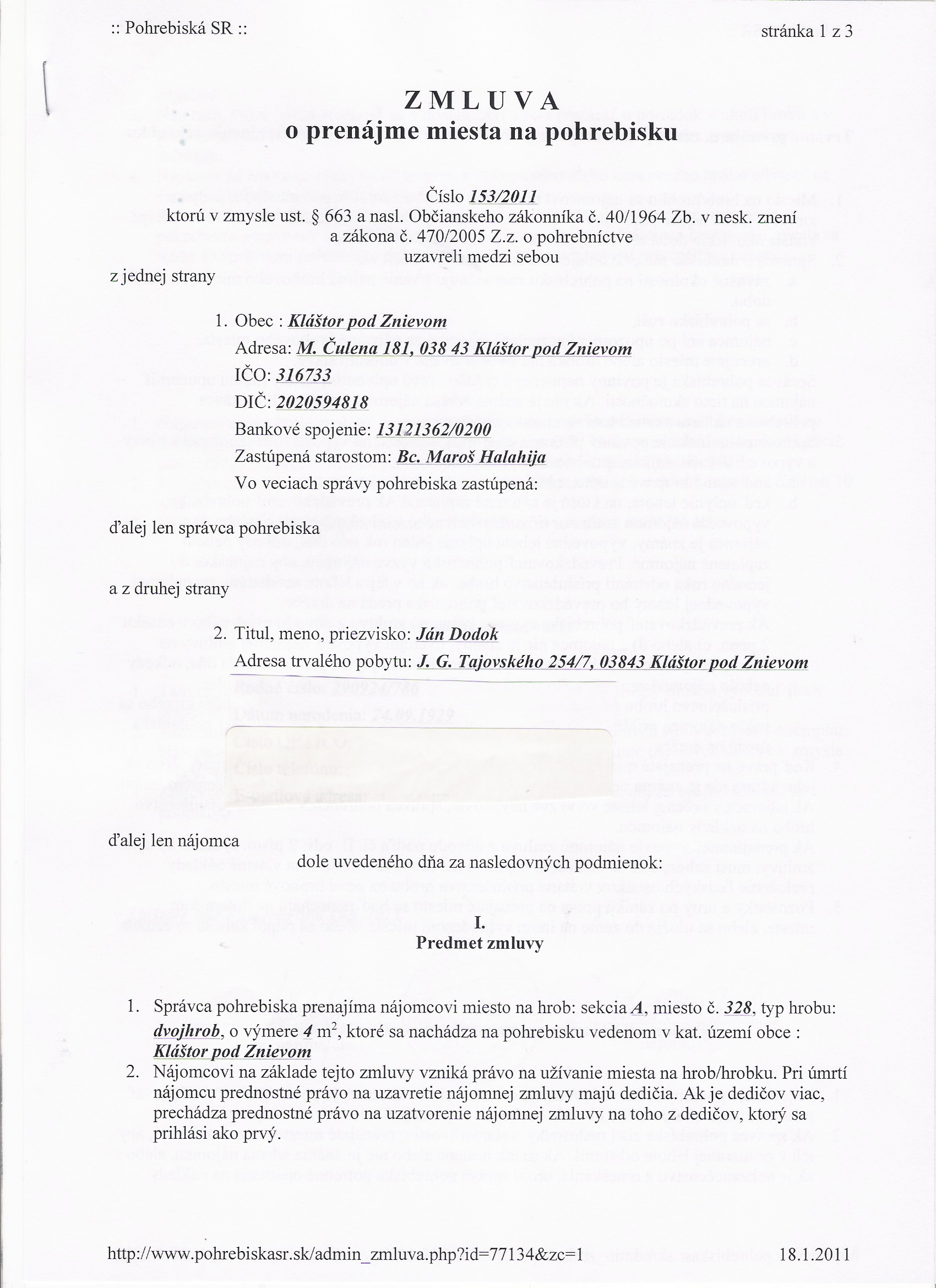 | Názov: | Zmluva o prenájme miesta na pohrebisku |