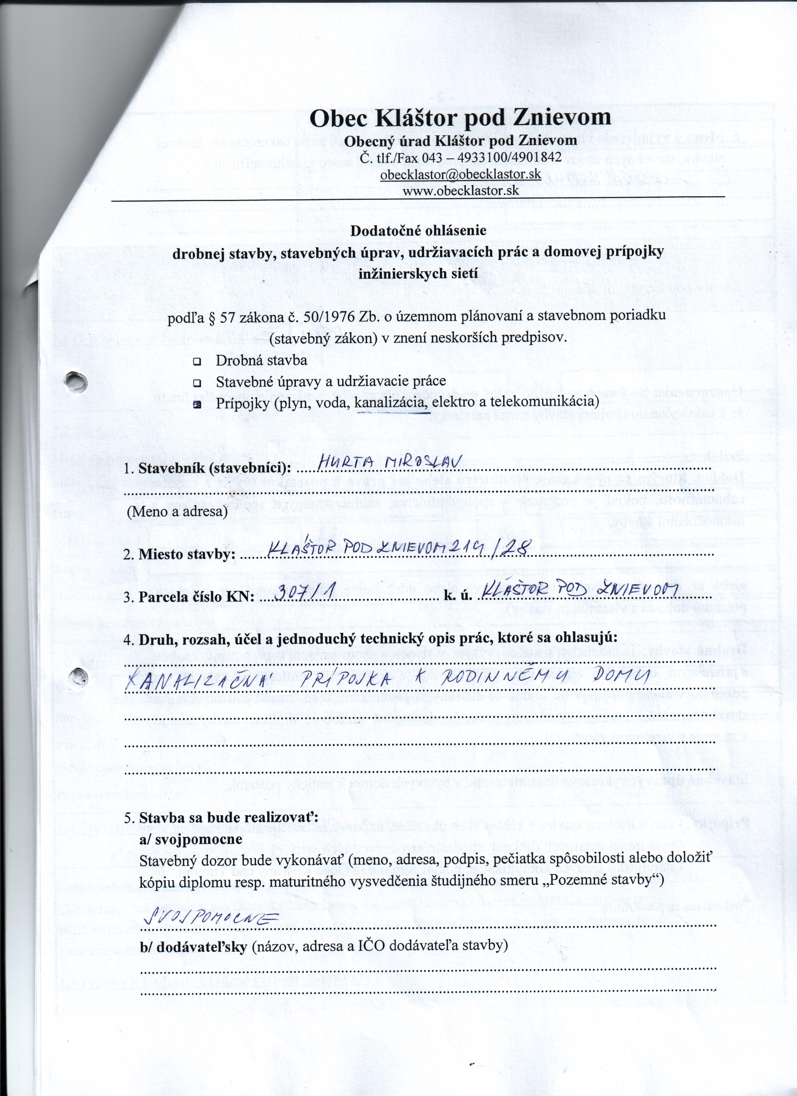 | 2/00086/2016 | SAND SK, s.r.o., Martin | Zmluva o dielo | Zhotovenie diela Zníženie energetickej náročnosti obecného úradu v Kláštore pod Znievom | 161 592,41 € | nestanovený | nestanovený |