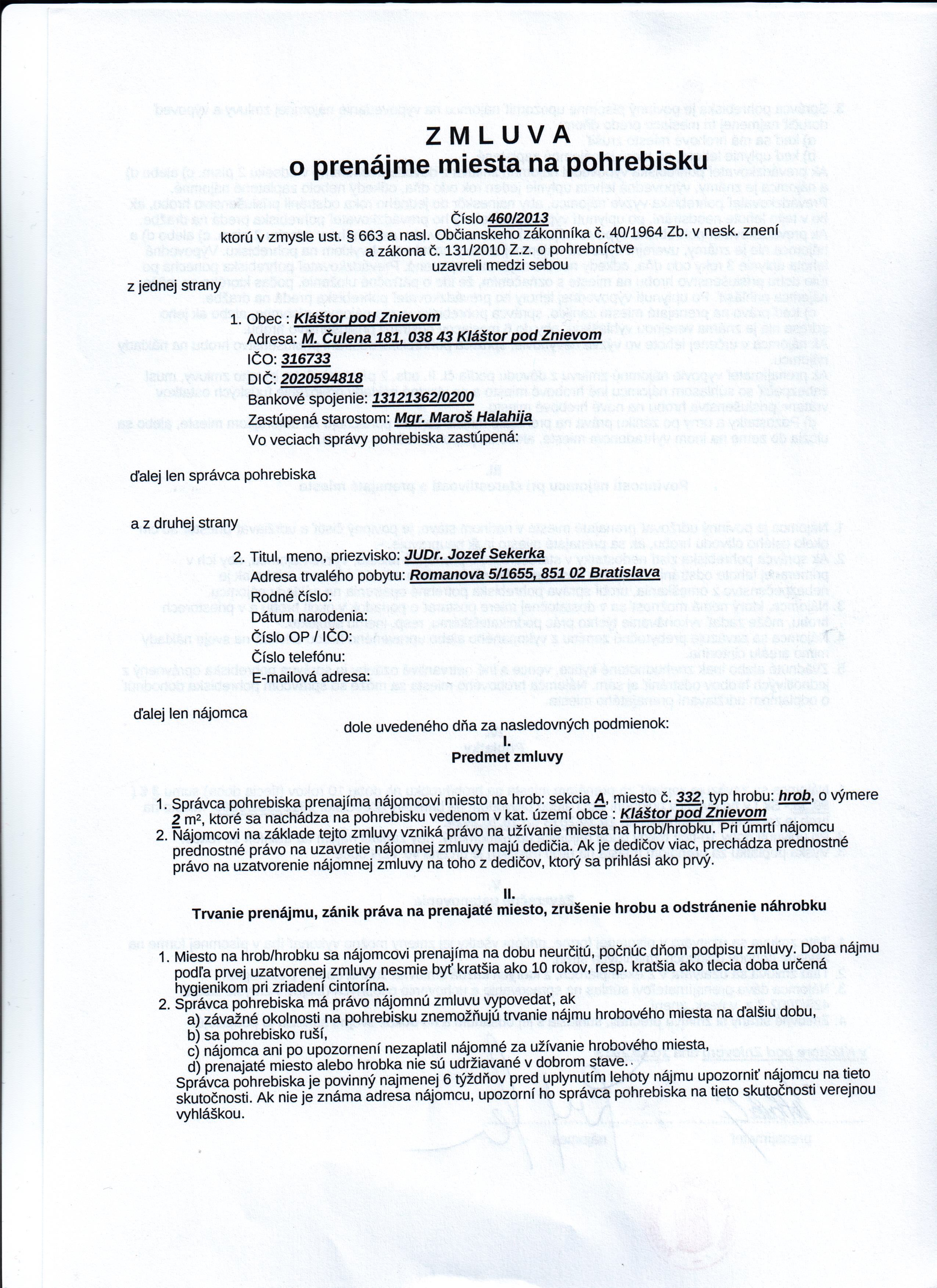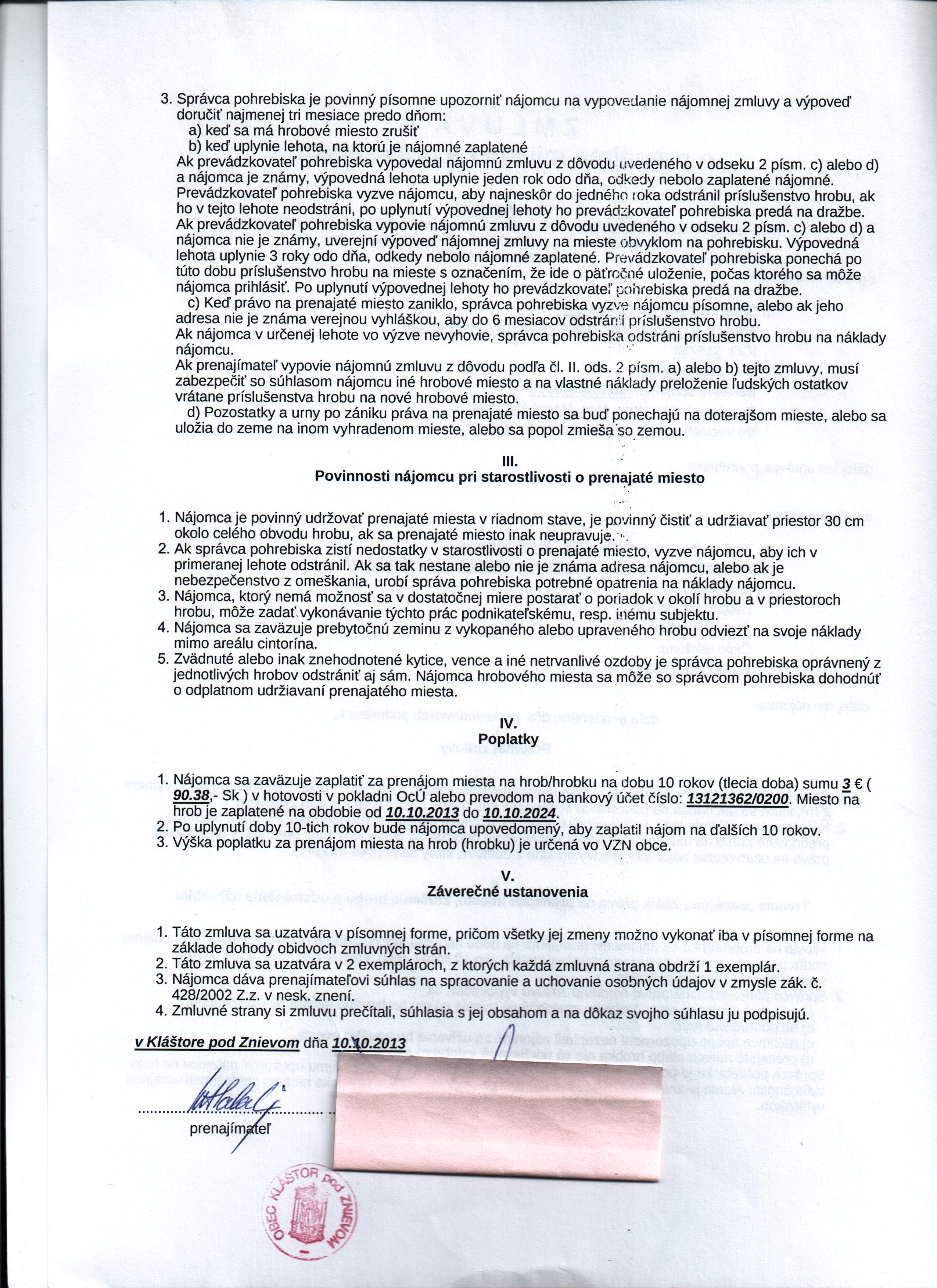 Názov:Zmluva o prenájme miesta na pohrebisku