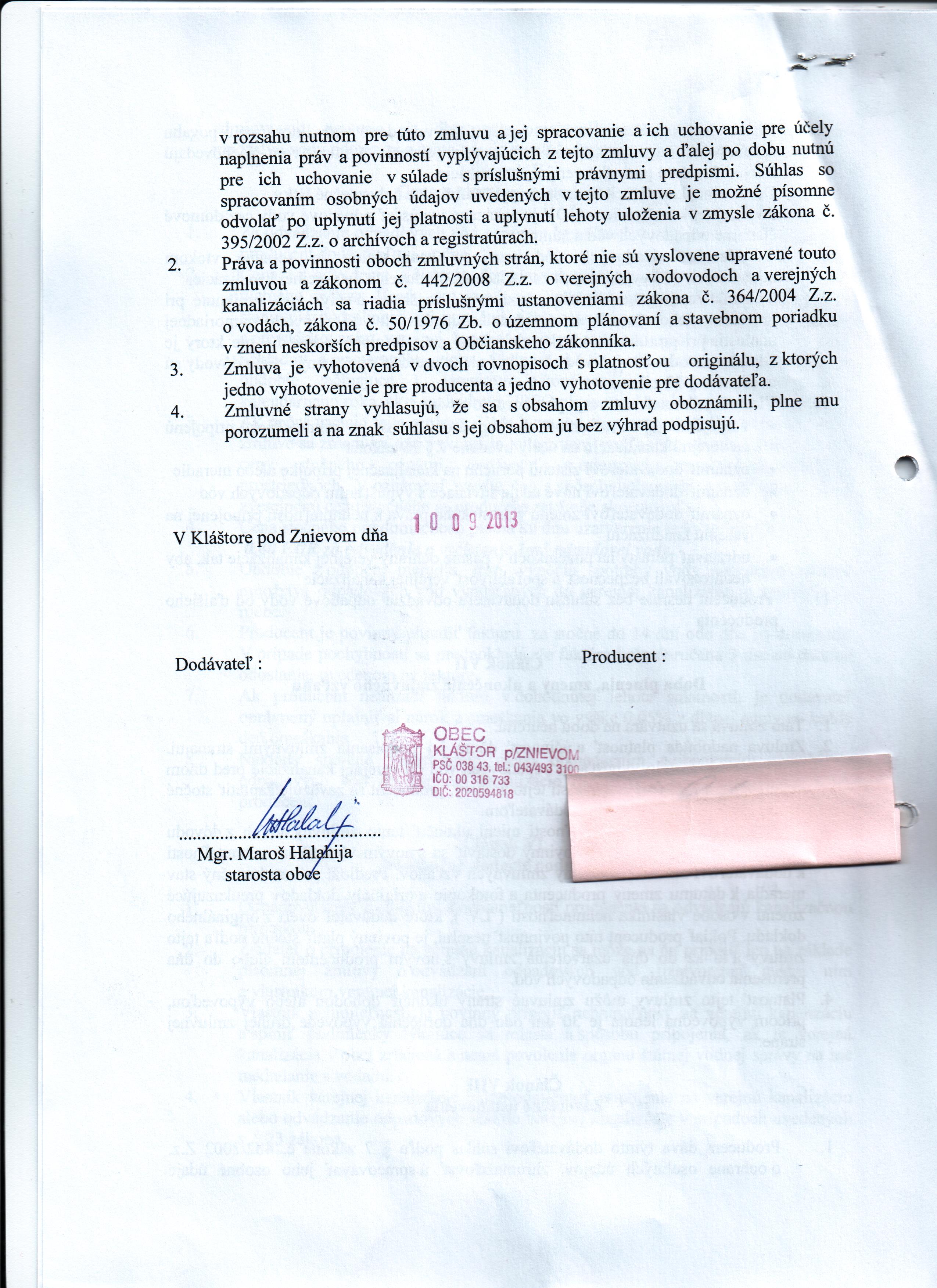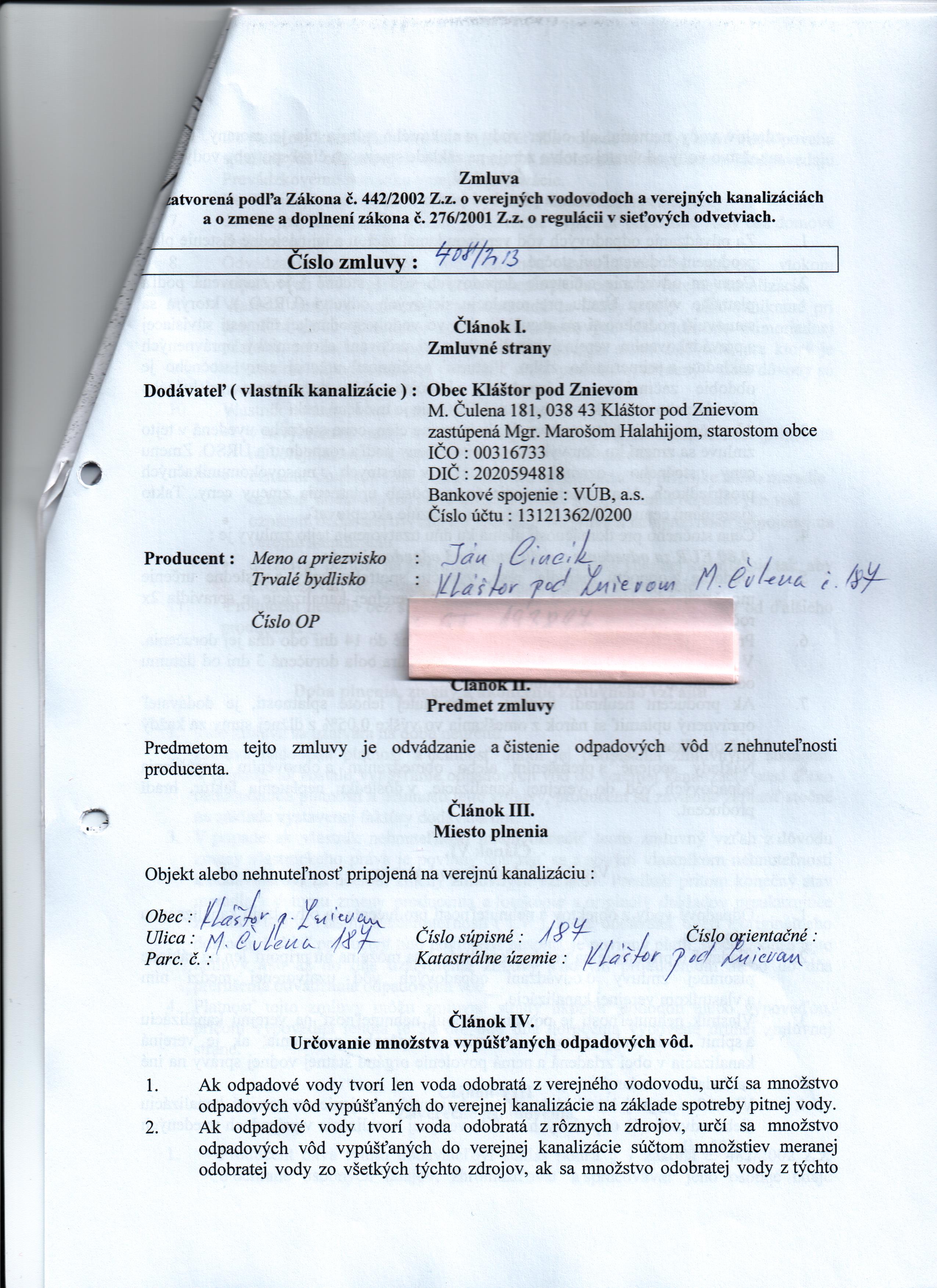 | Názov: | Zmluva o verejných vodovodoch a verejných kanalizáciach |