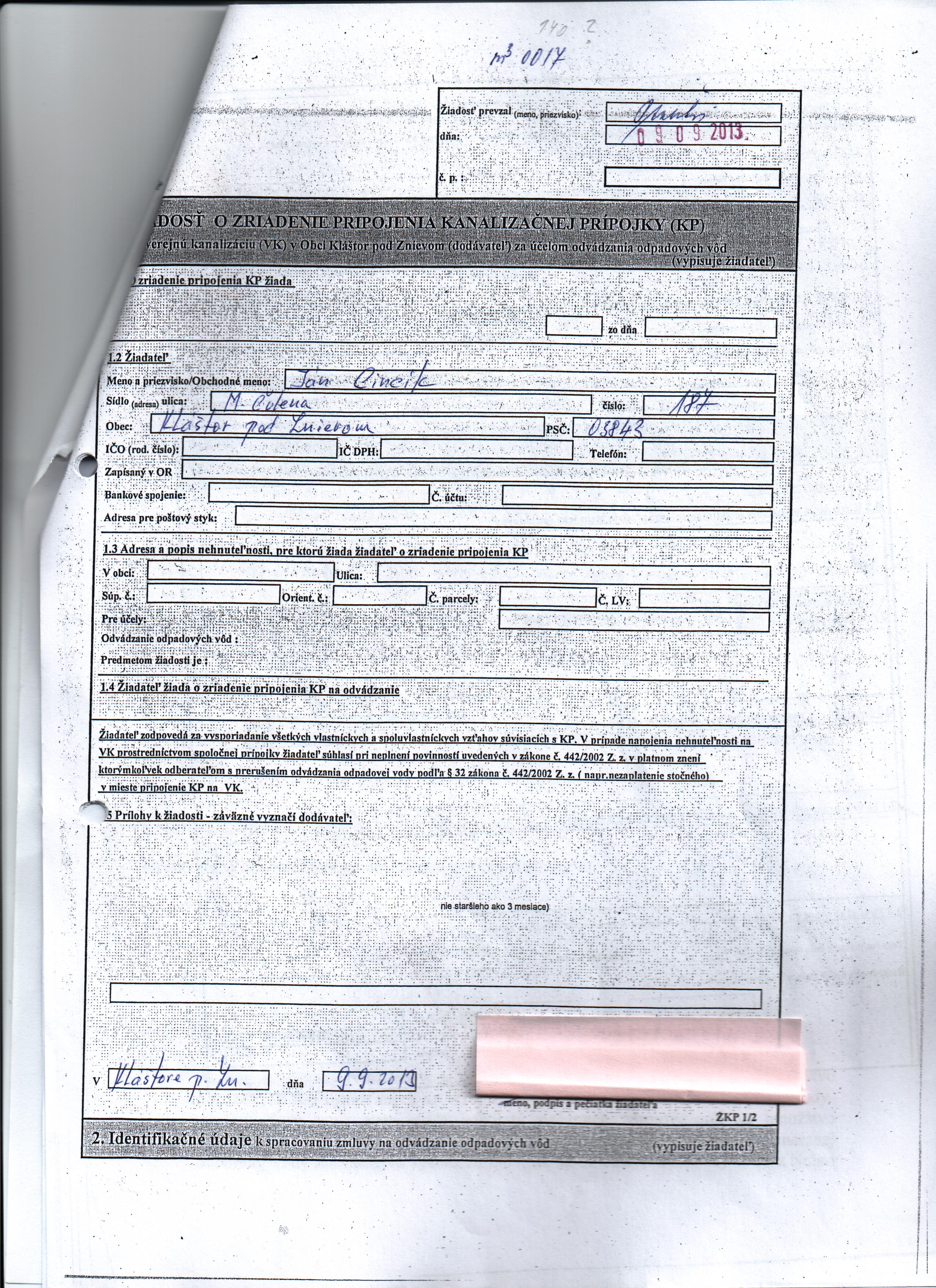 | Zmluvná strana 2: | Obec Kláštor pod Znievom |