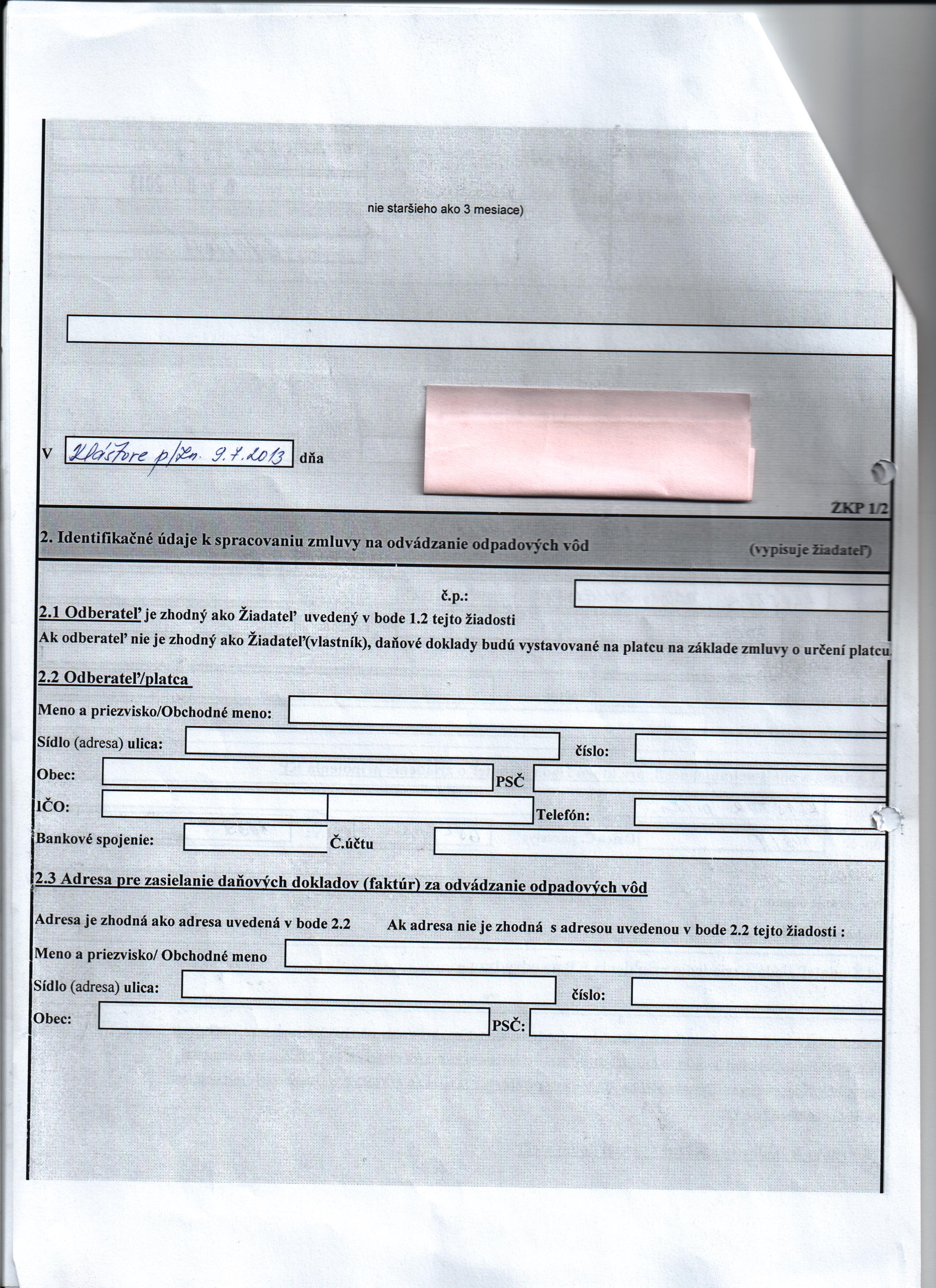 | Meno osoby, ktorá zmluvu uzatvorila: | |