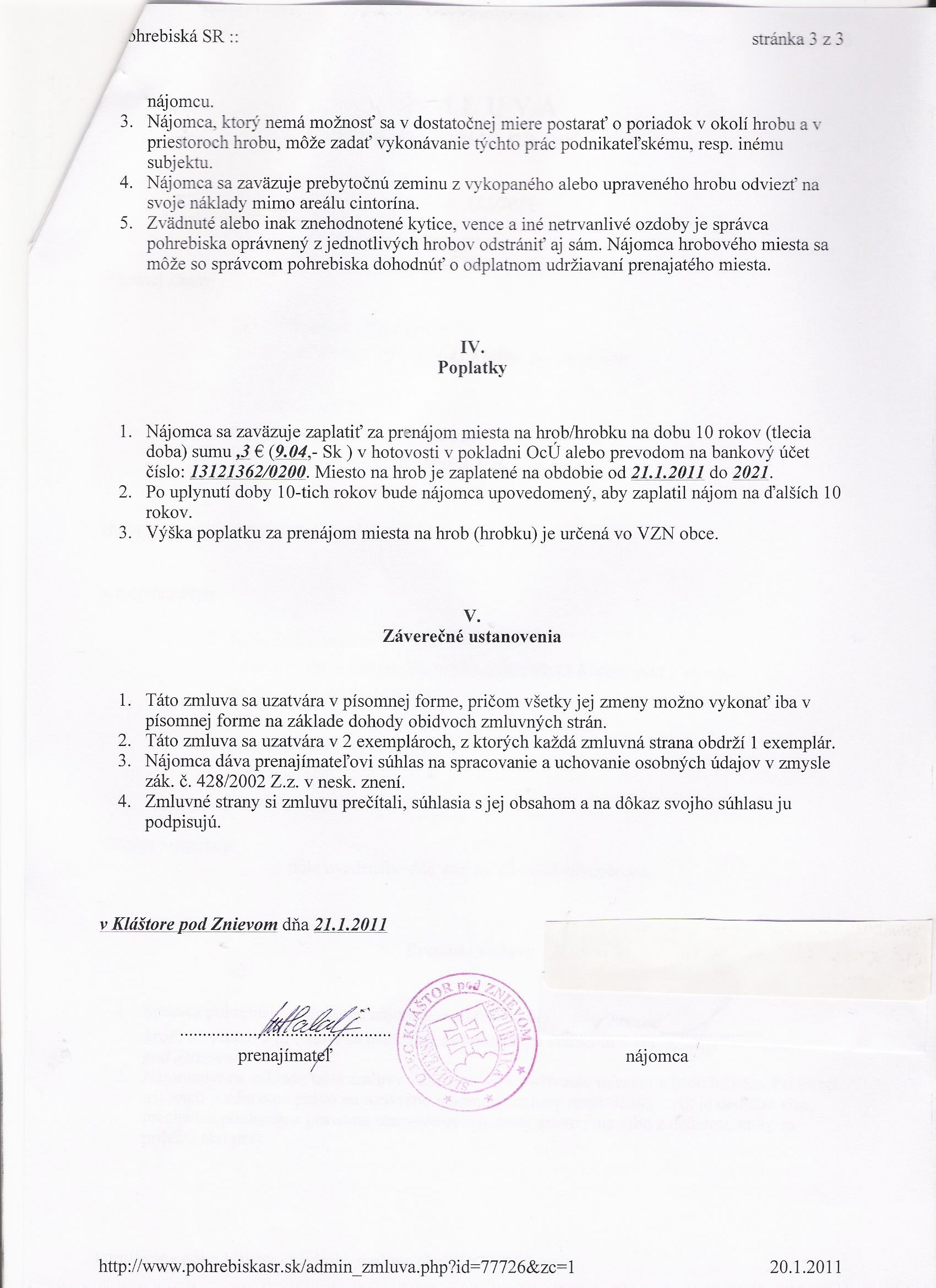 | Názov: | Zmluva o prenájme miesta na pohrebisku |
