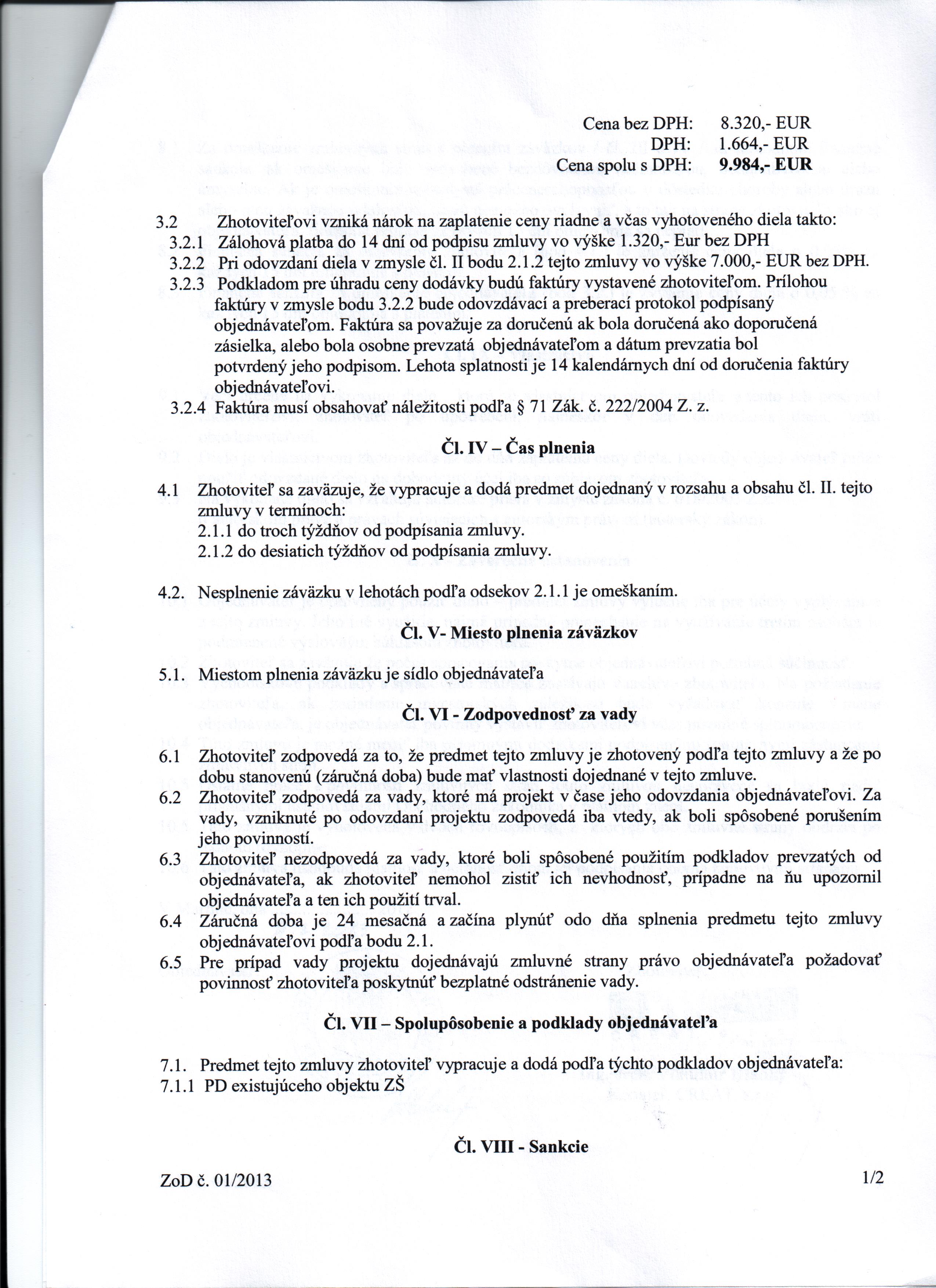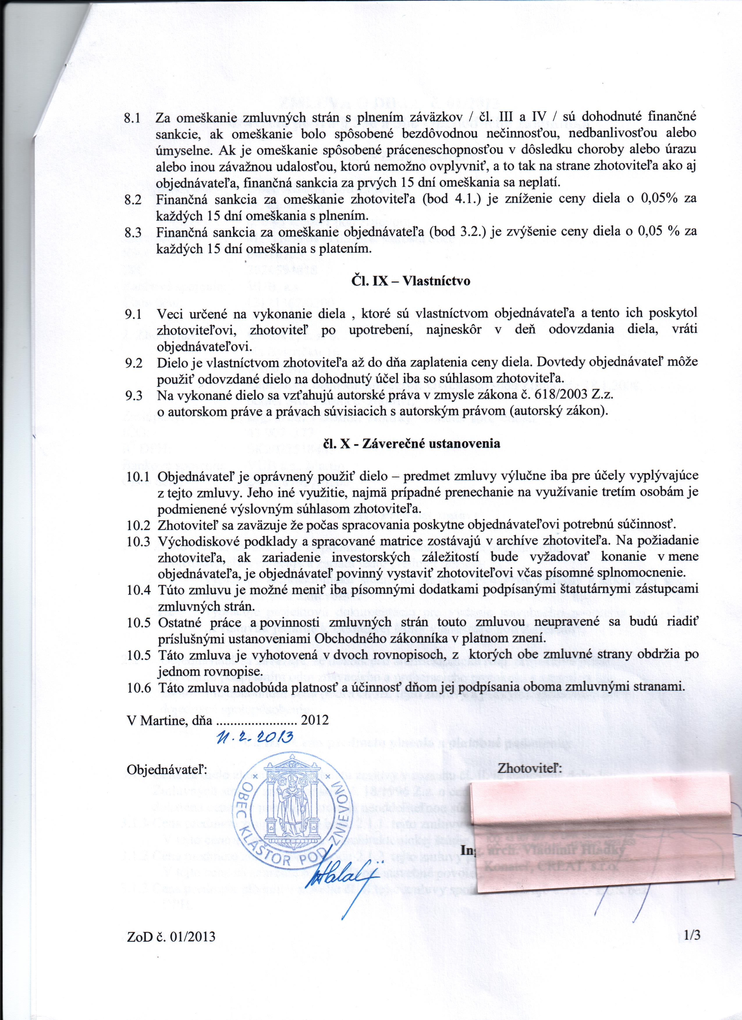 | Dátum uzavretia zmluvy: | 5.1.2013 |
