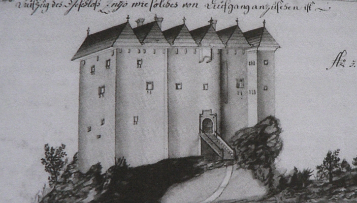 V roku 1538 hrad nakrátko nadobudol František Révay, ktorý ho v roku 1545 prikázal opevniť. V priebehu druhej polovice 16. a začiatku 17. storočia hrad často menil majiteľov. Vtedy došlo k renesančnej prestavbe paláca, ktorého vernú podobu po prestavbe približuje zobrazenie z konca 18. storočia. Z neho vyplýva, že rozšírením stredovekej stavby na východ a prístavbou obrannej hranolovej bašty pri vstupe vznikla pozdĺžna budova, zastrešená šesticou priečnych valbových striech. Okrem bašty zabezpečovali obranu objektu strieľne prelomené v parapetoch okien. Nad vstupom s padacím mostom bola na poschodí situovaná kaplnka a archív, pričom do priekopy na západe ústila z obytných priestorov väčšina prevétov. Terénne priehlbiny na ploche priľahlého nádvoria naznačujú, že k tejto stavbe patrili ešte ďalšie, zrejme hospodárske a dnes už úplne zaniknuté budovy.