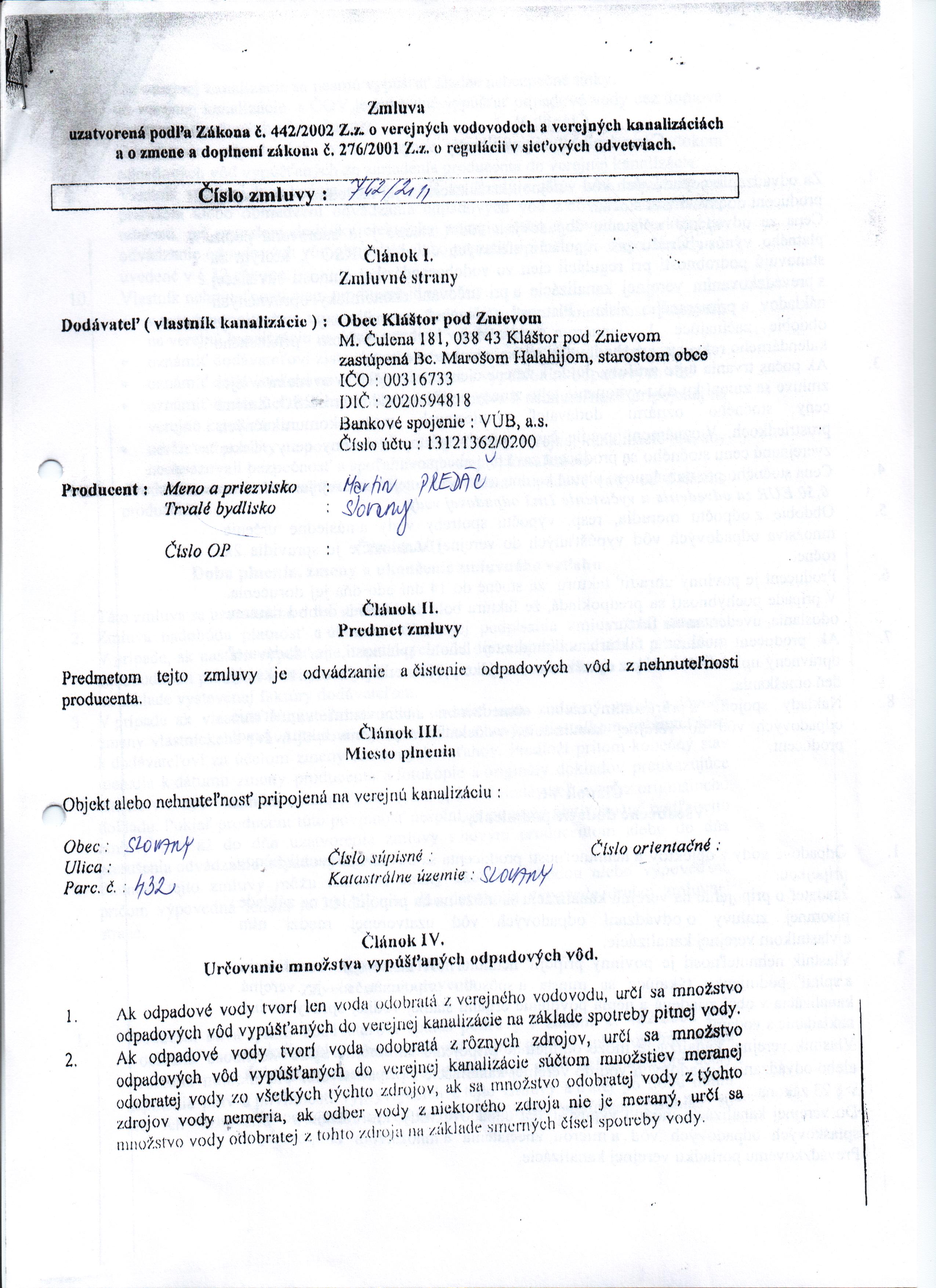 Názov:Zmluva o verejných vodovodoch a verejných kanalizáciách