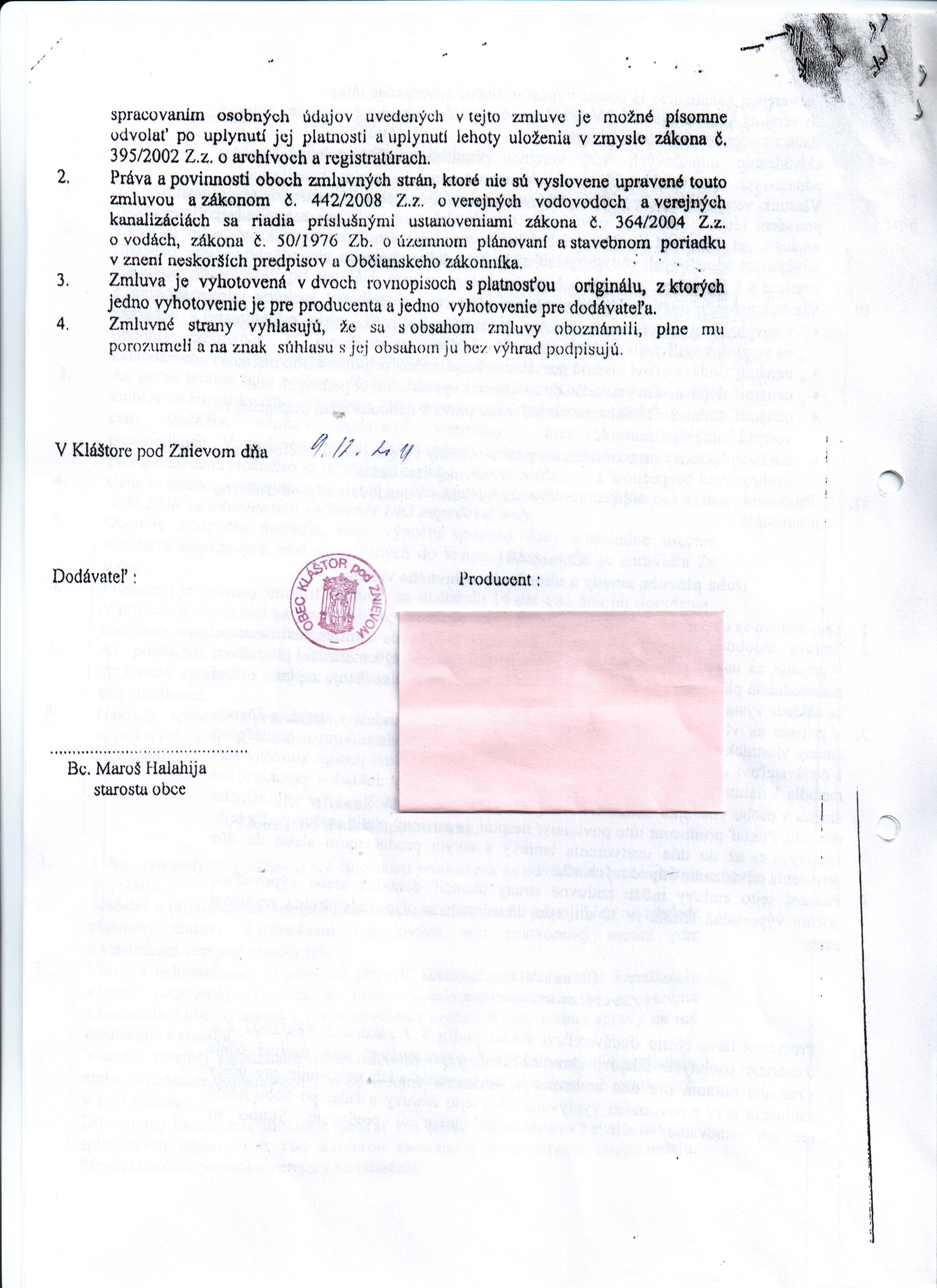 Zmluvy » subjekt: Obec Kláštor pod Znievom » rok: 2011
