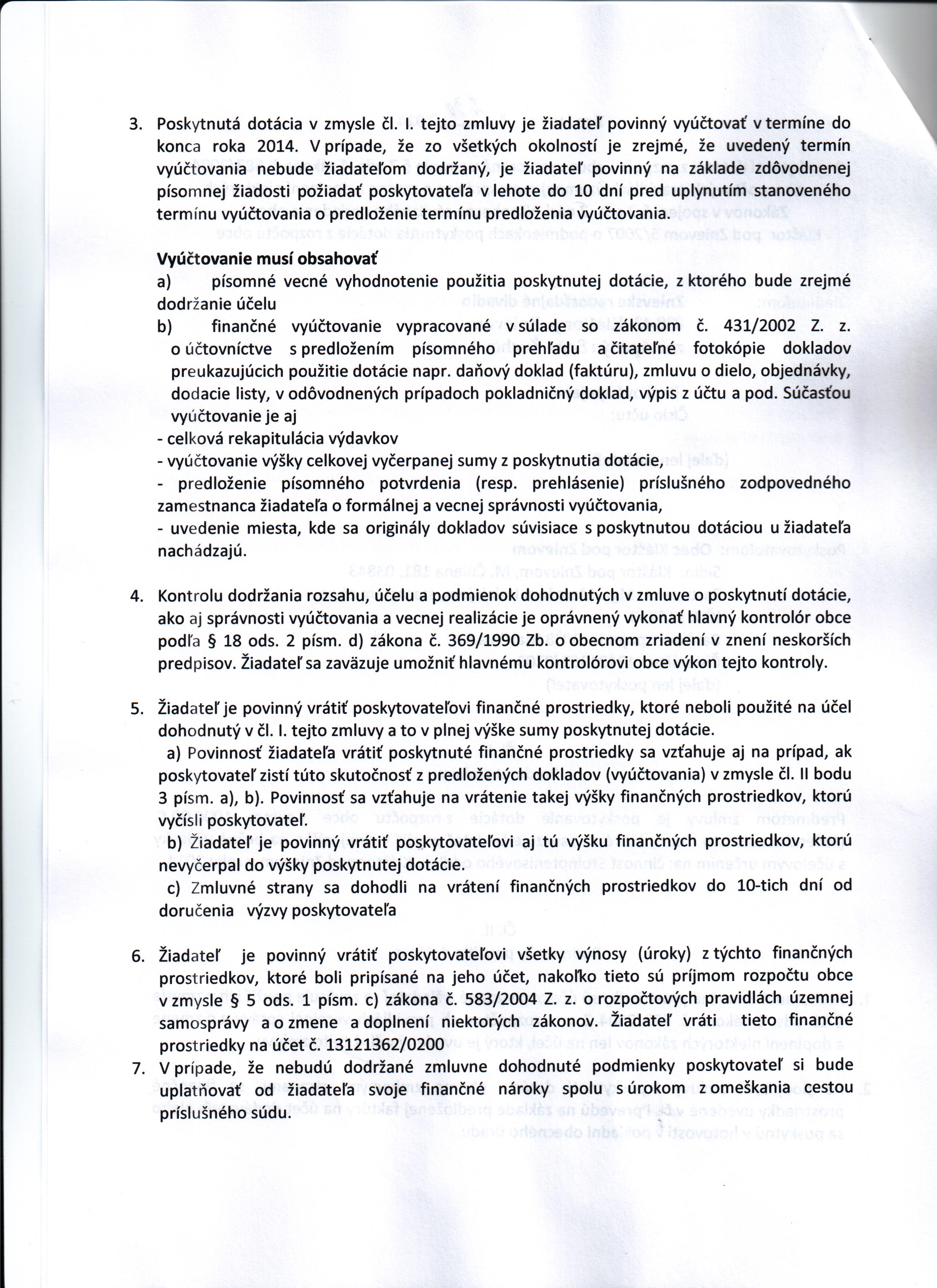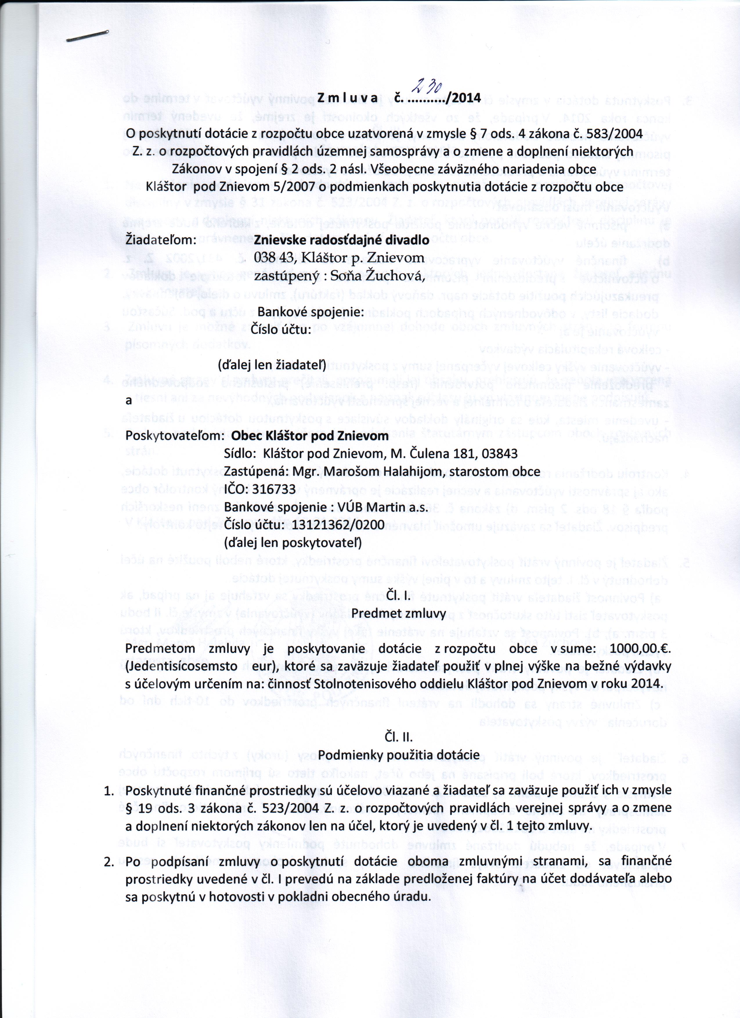 Názov:Zmluva o poskytnutí dotácie z rozpočtu obce