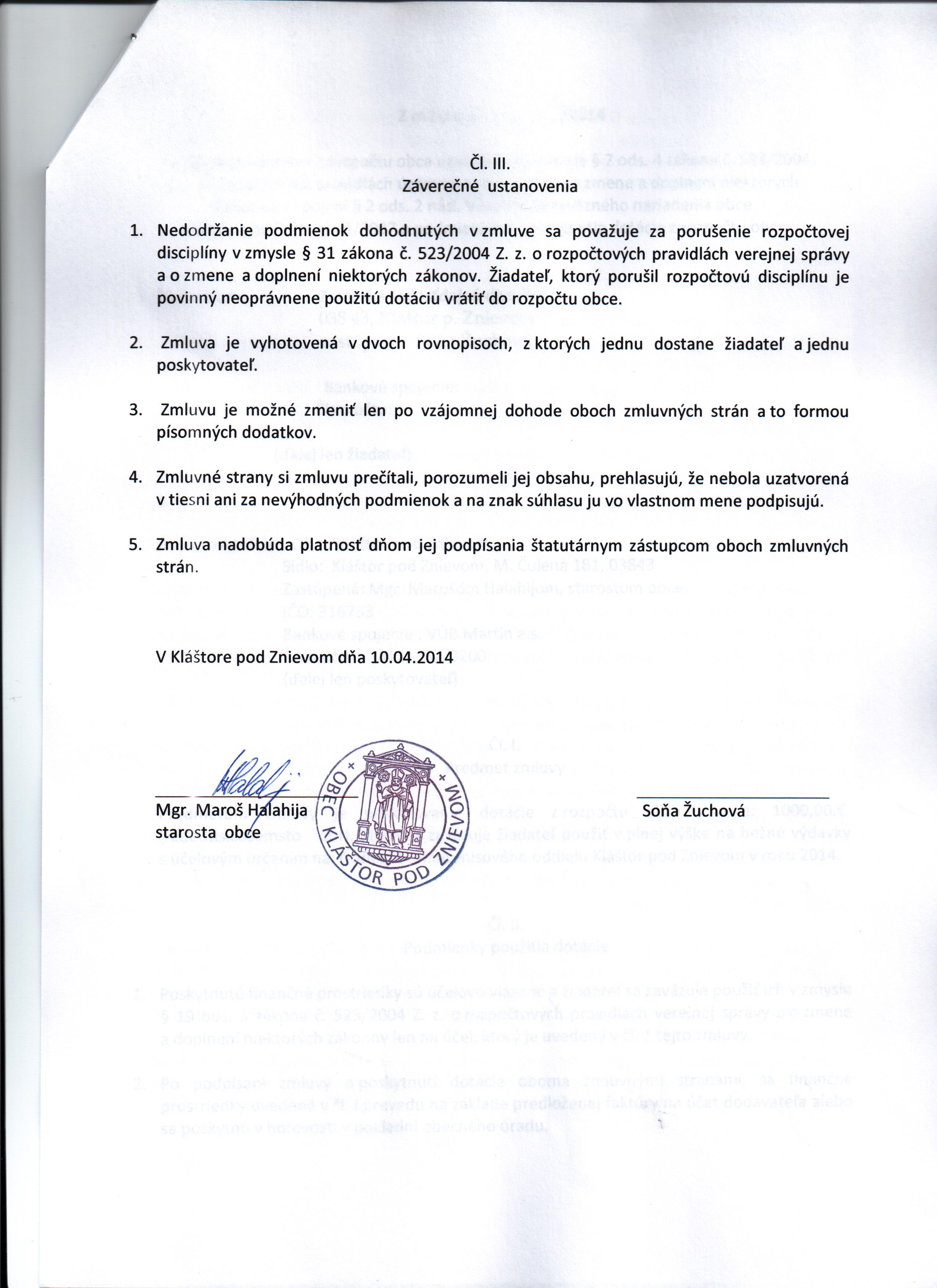 Dátum uzavretia zmluvy:14.4.2014