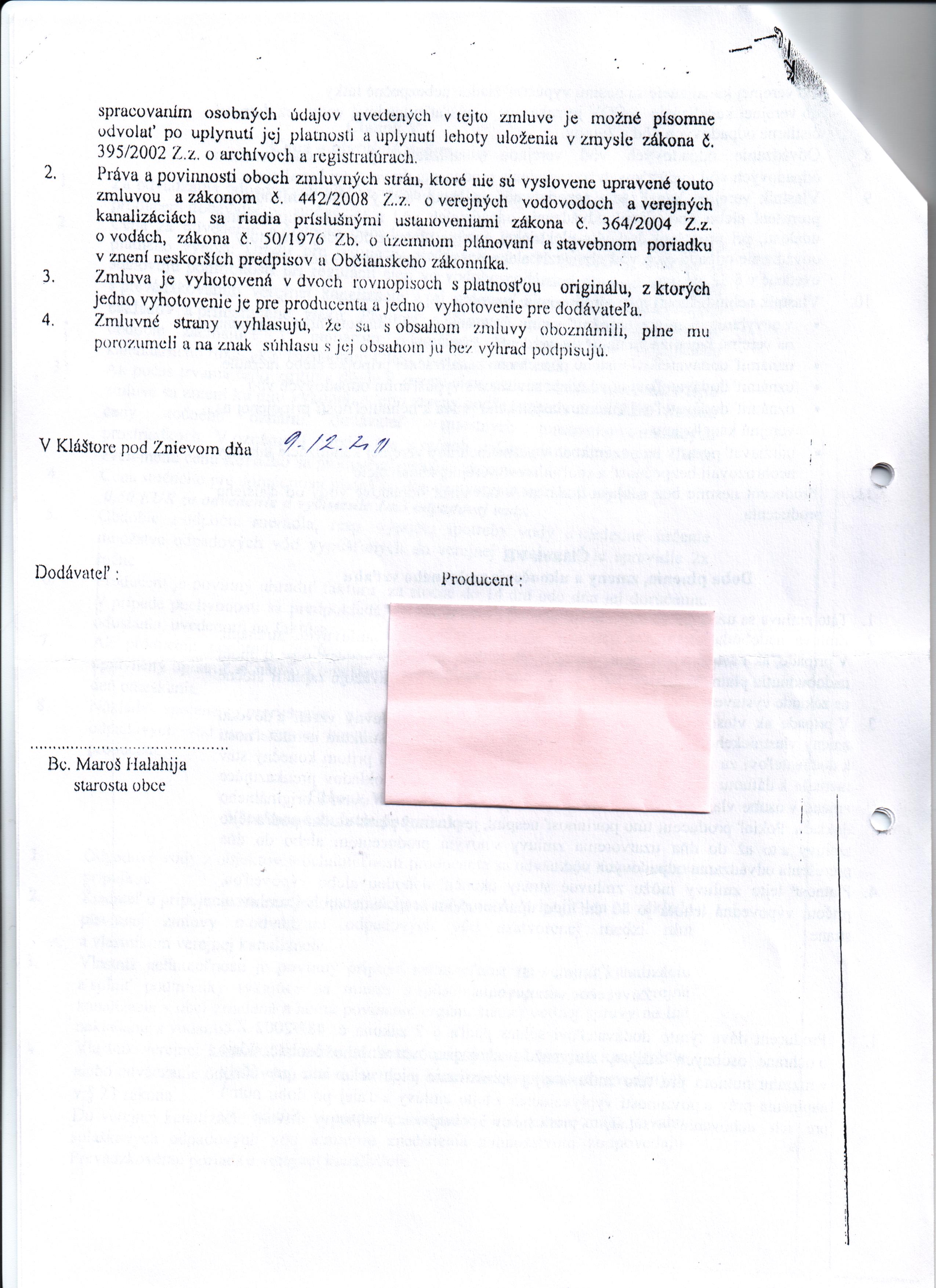 Zmluvy » subjekt: Obec Kláštor pod Znievom » rok: 2011
