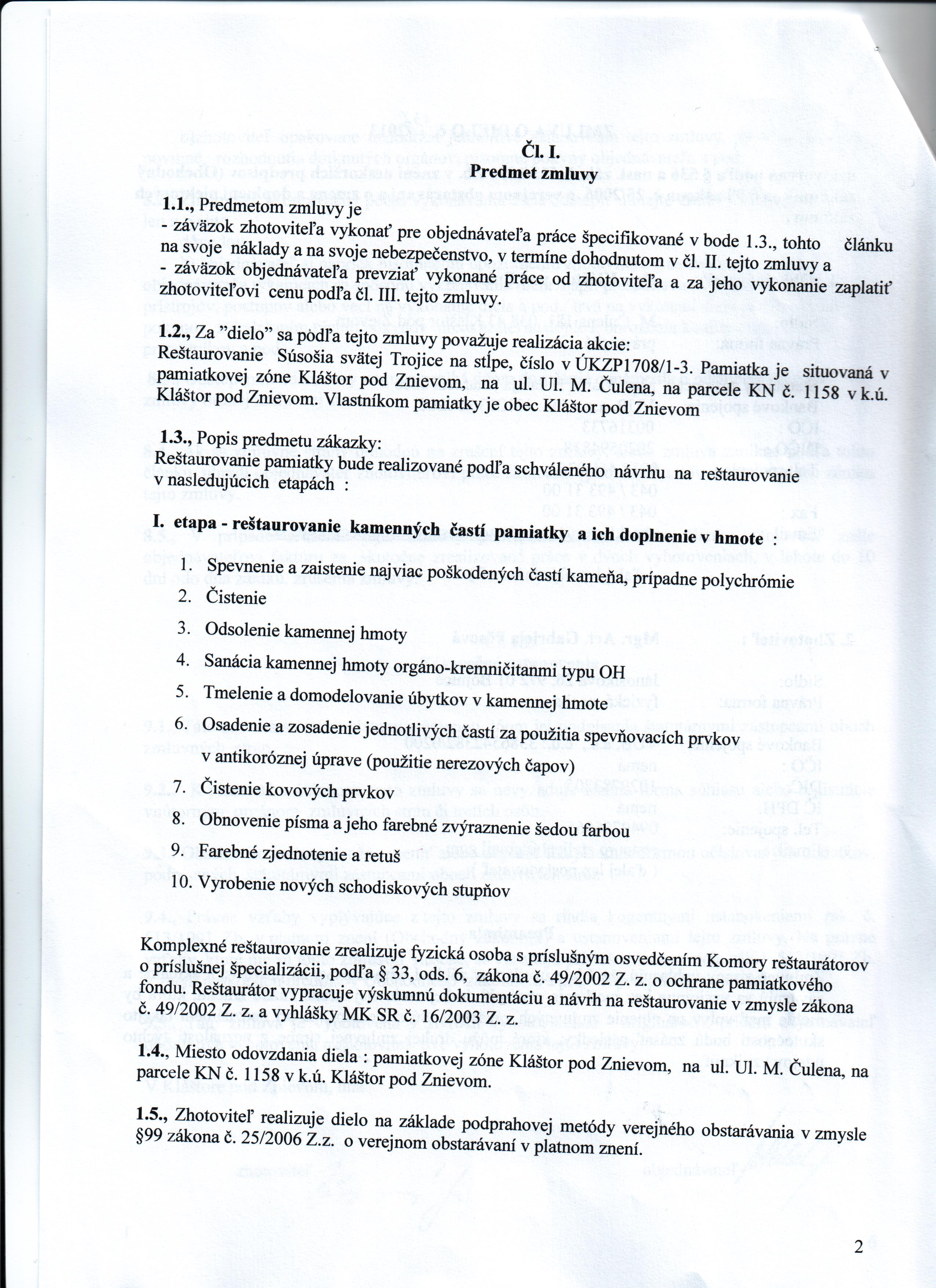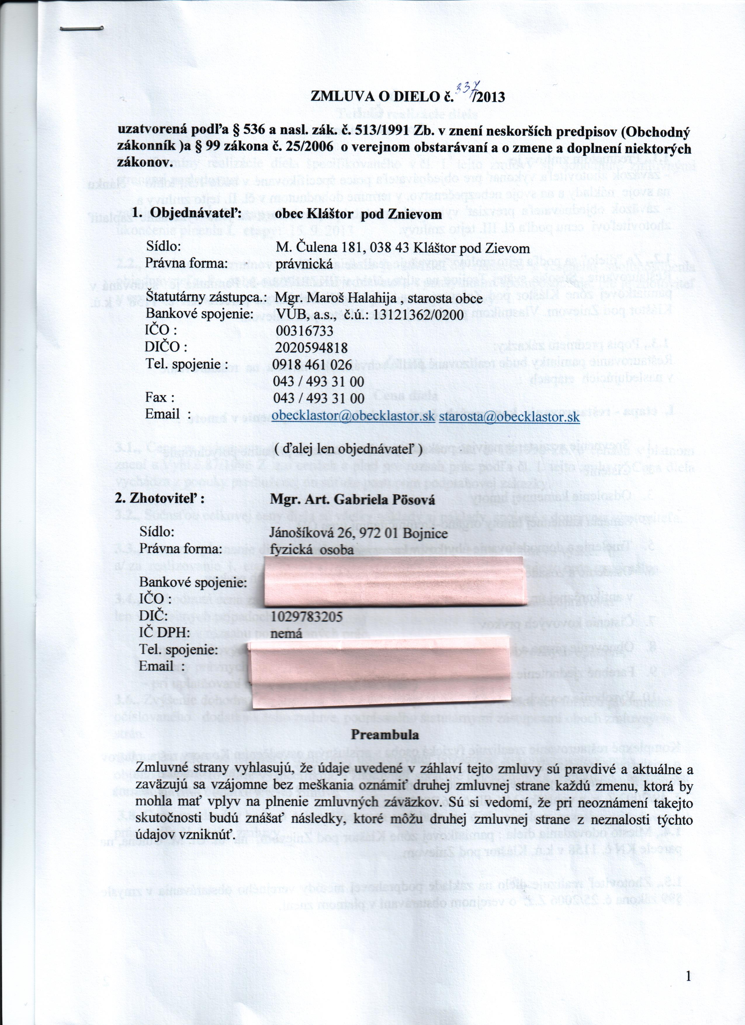 | 1/2011 | Ladislav Jakubec | Zmluva o dielo | 8 052,52 € | 30.6.2011 | nestanovený | |