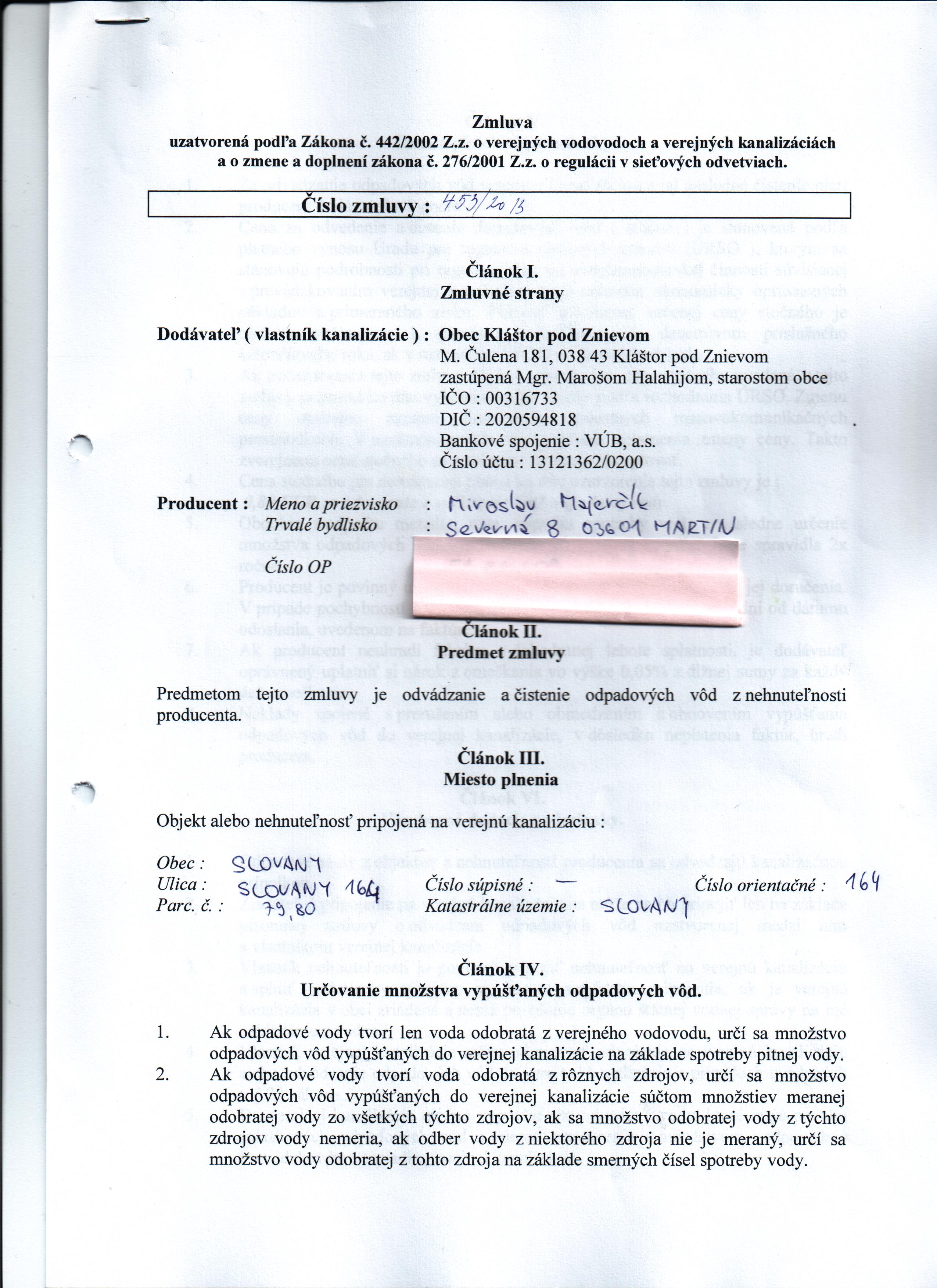 | Názov: | Zmluva o verejných vodovodoch a verejných kanalizáciach |