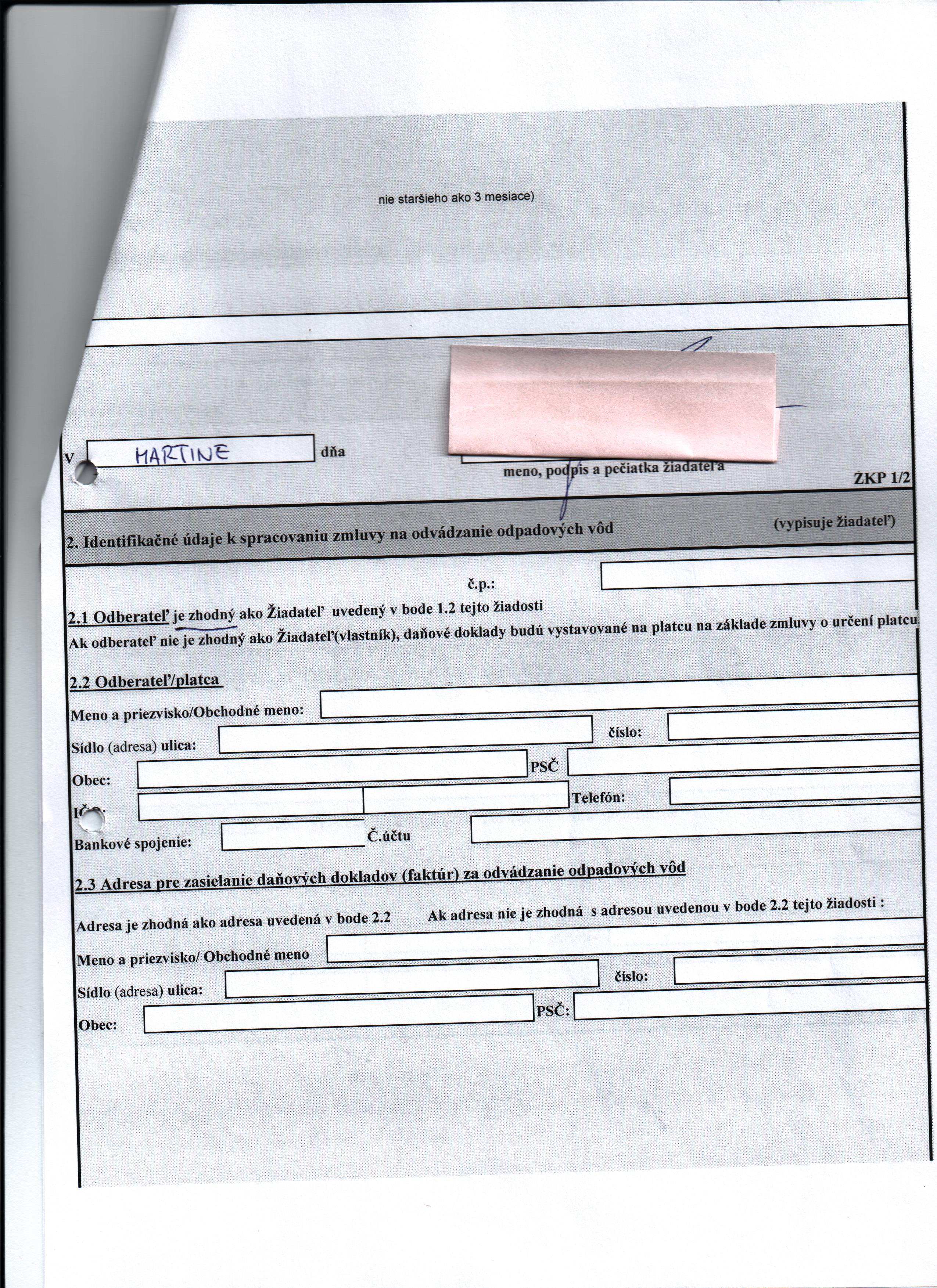 | Meno osoby, ktorá zmluvu uzatvorila: | |