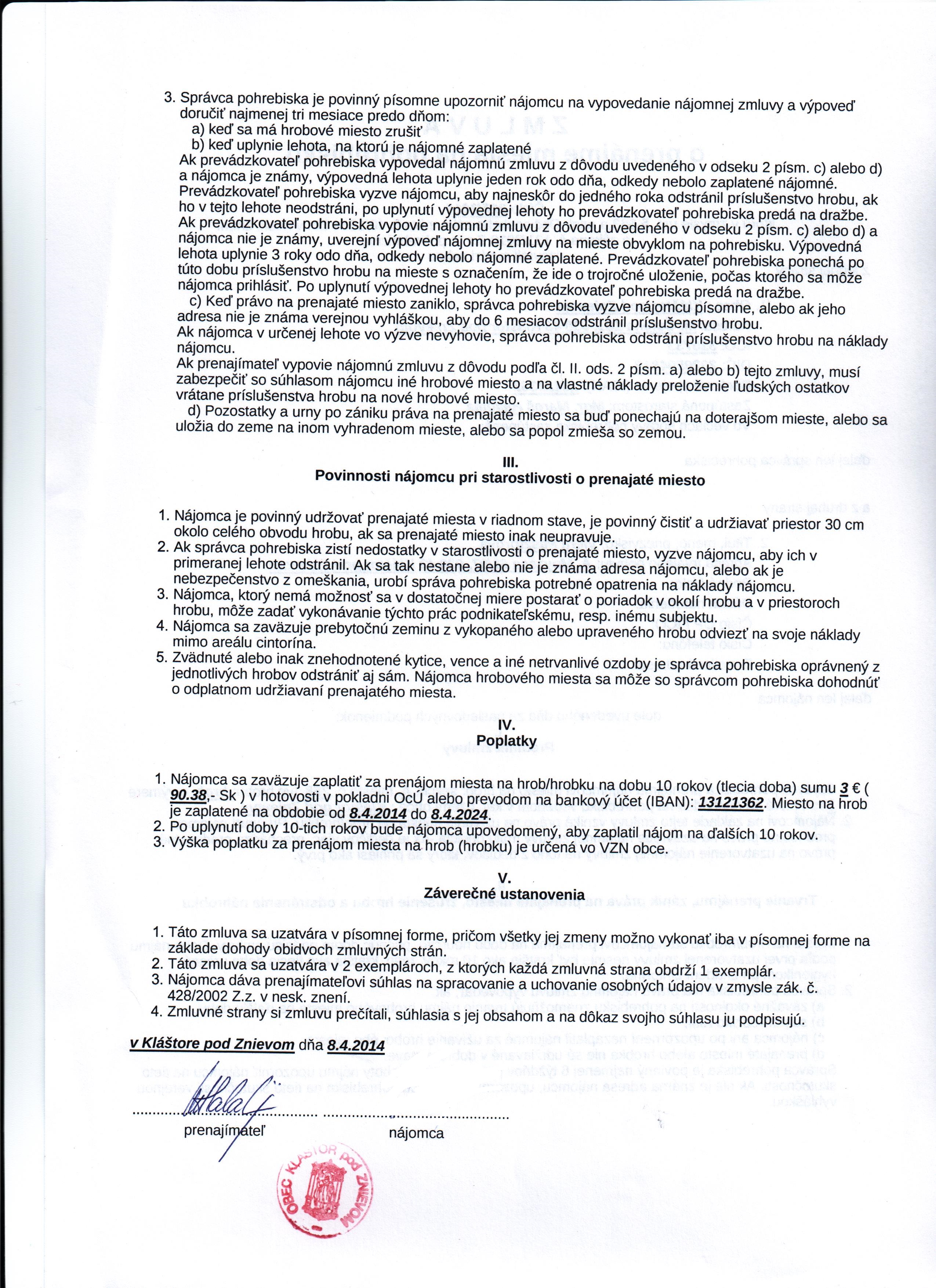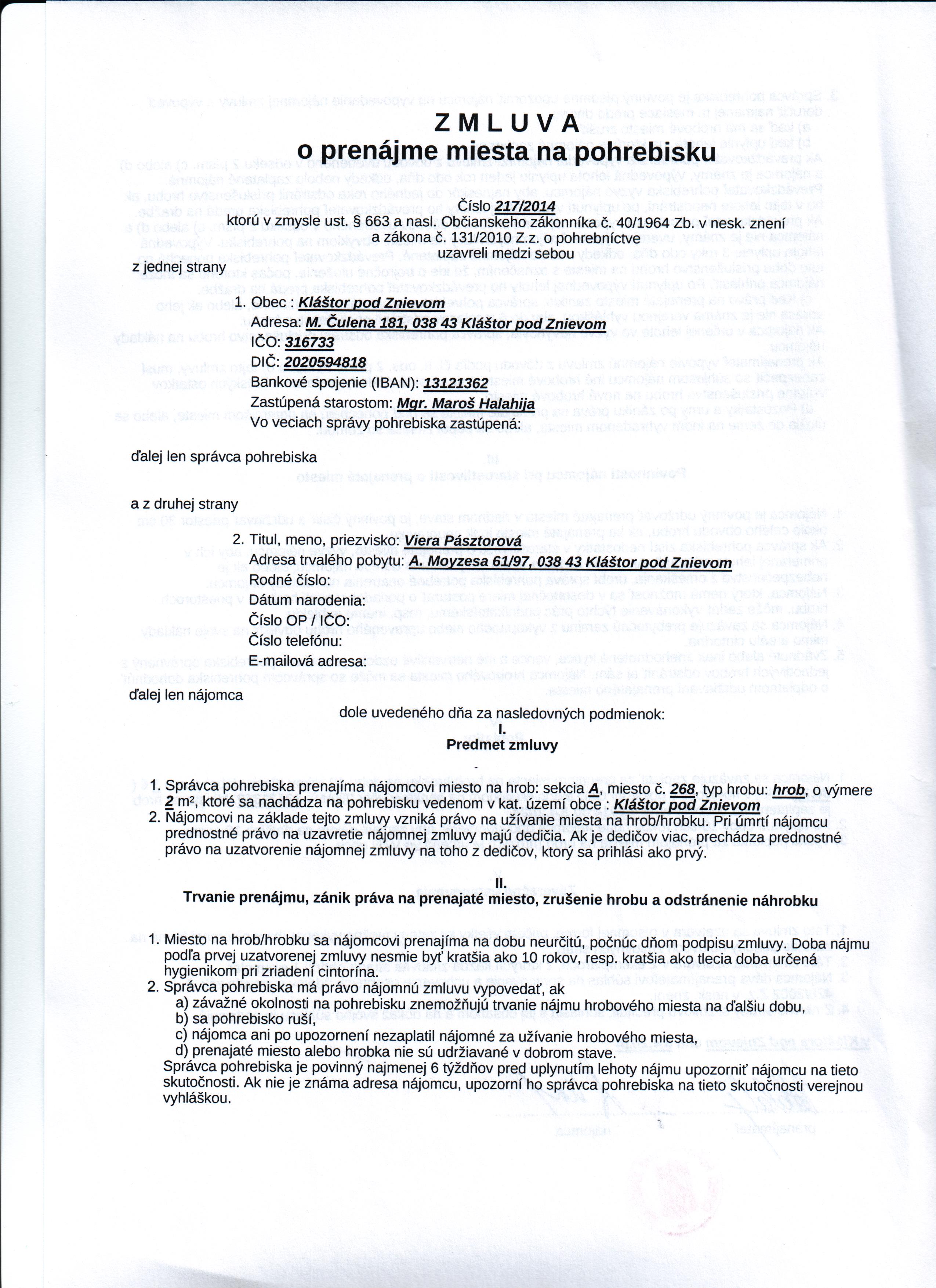 Názov:Zmluva o prenájme miesta na pohrebisku