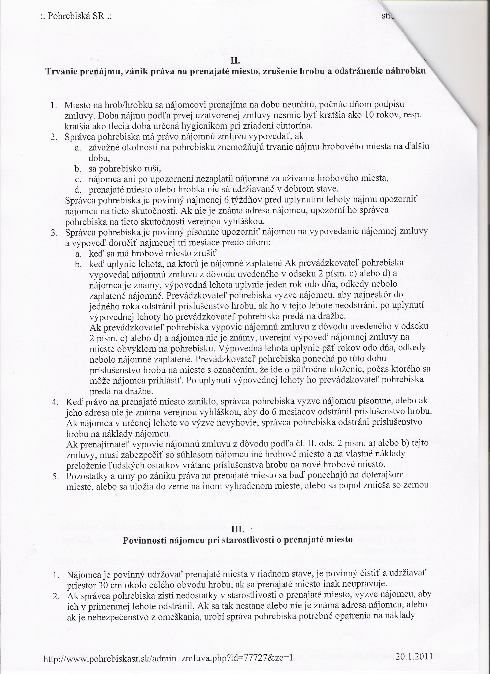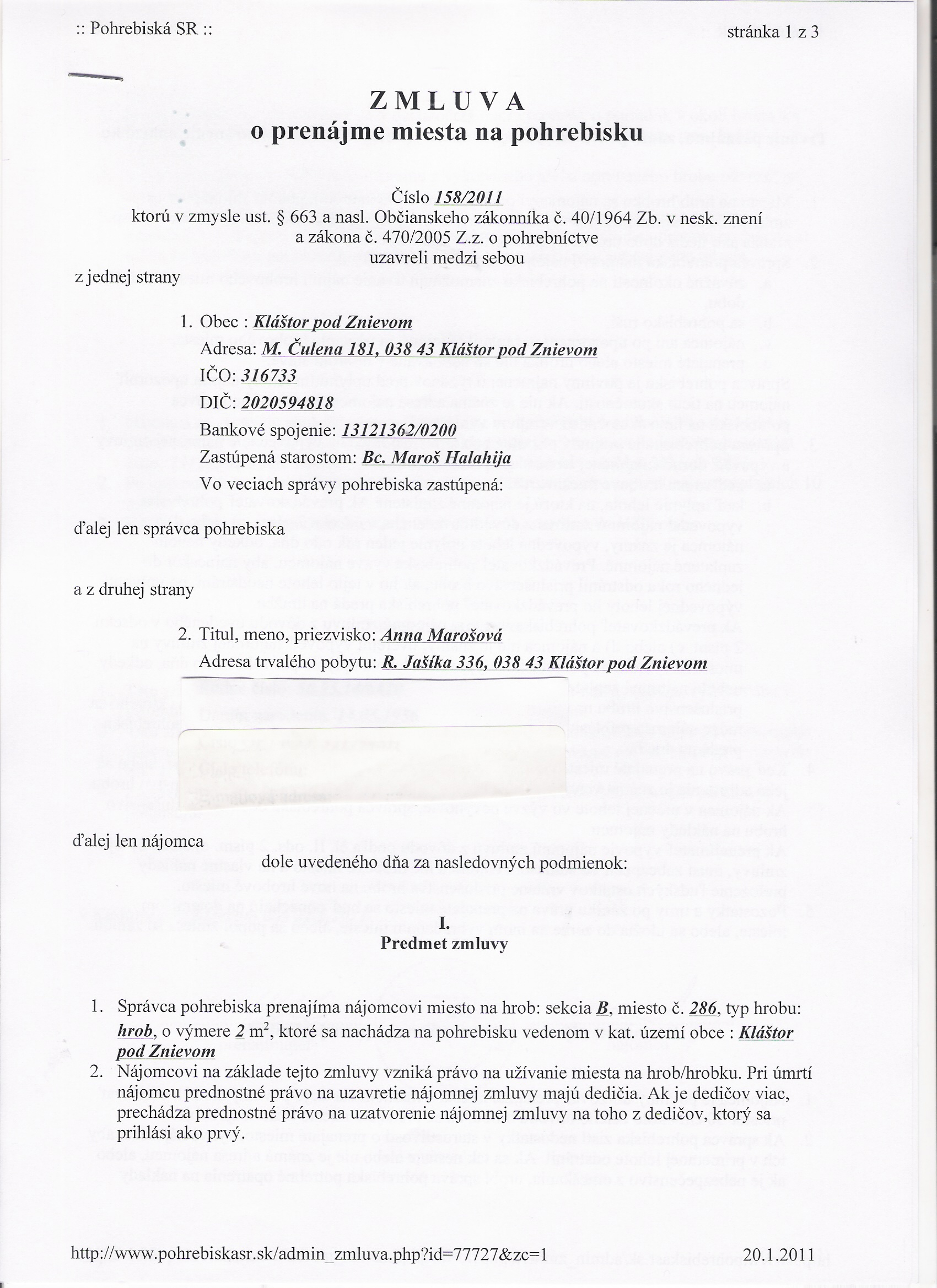 | Názov: | Zmluva o prenájme miesta na pohrebisku |