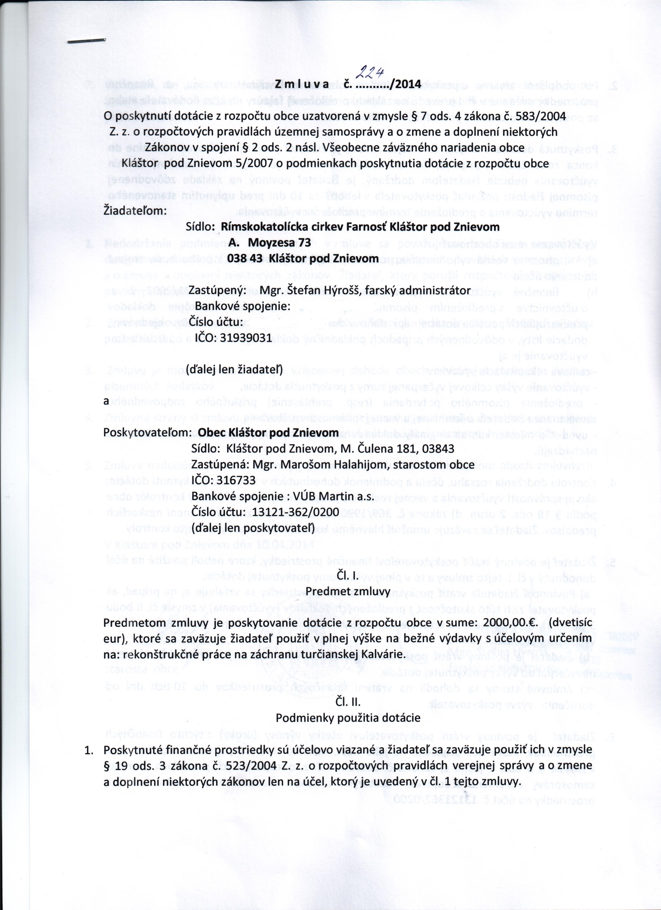 54/2011Obec Kláštor pod ZnievomZmluva 300,00 €9.1.2011nestanovený