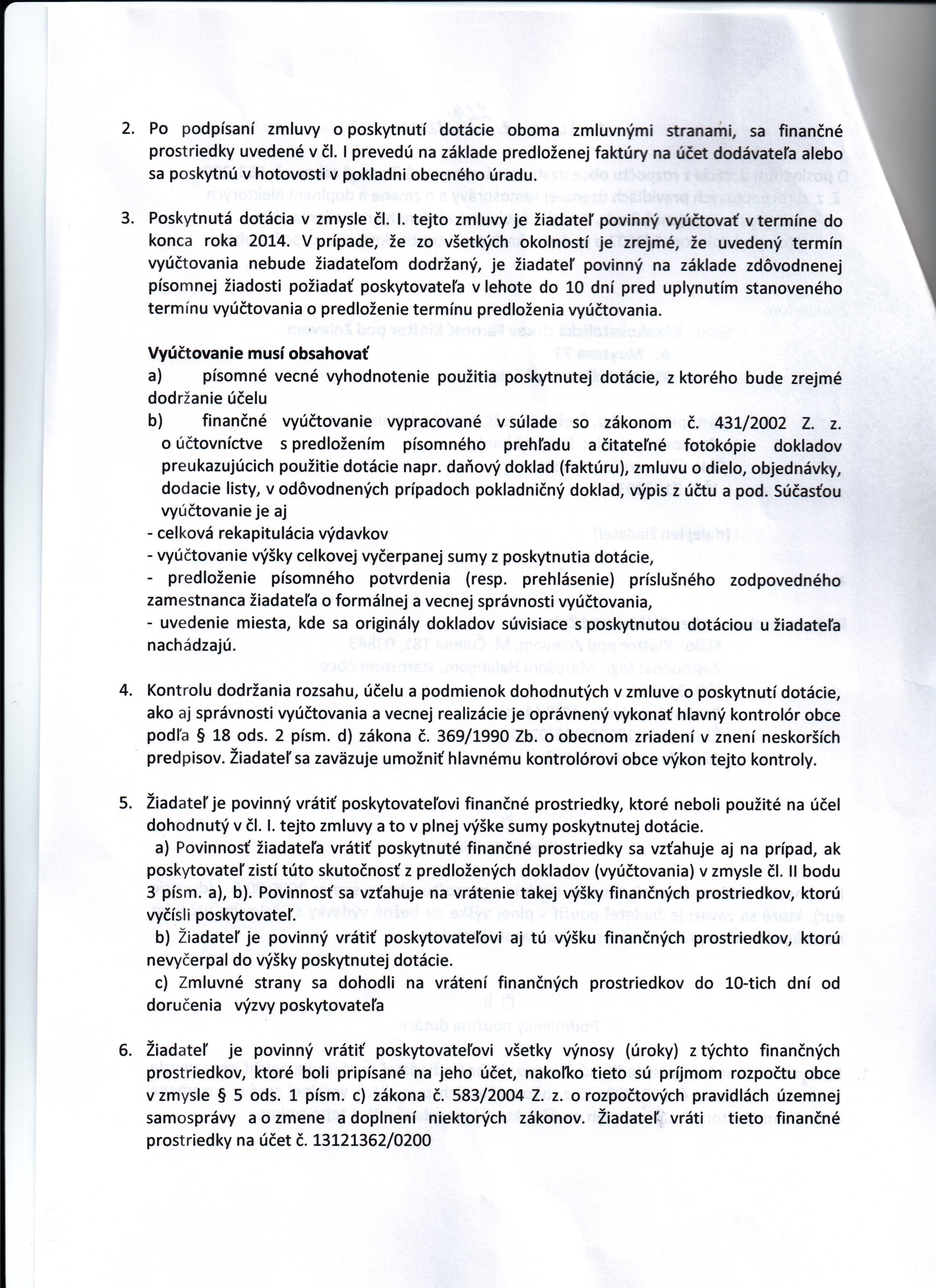Názov:Zmluva o poskytnutí dotácie z rozpočtu obce