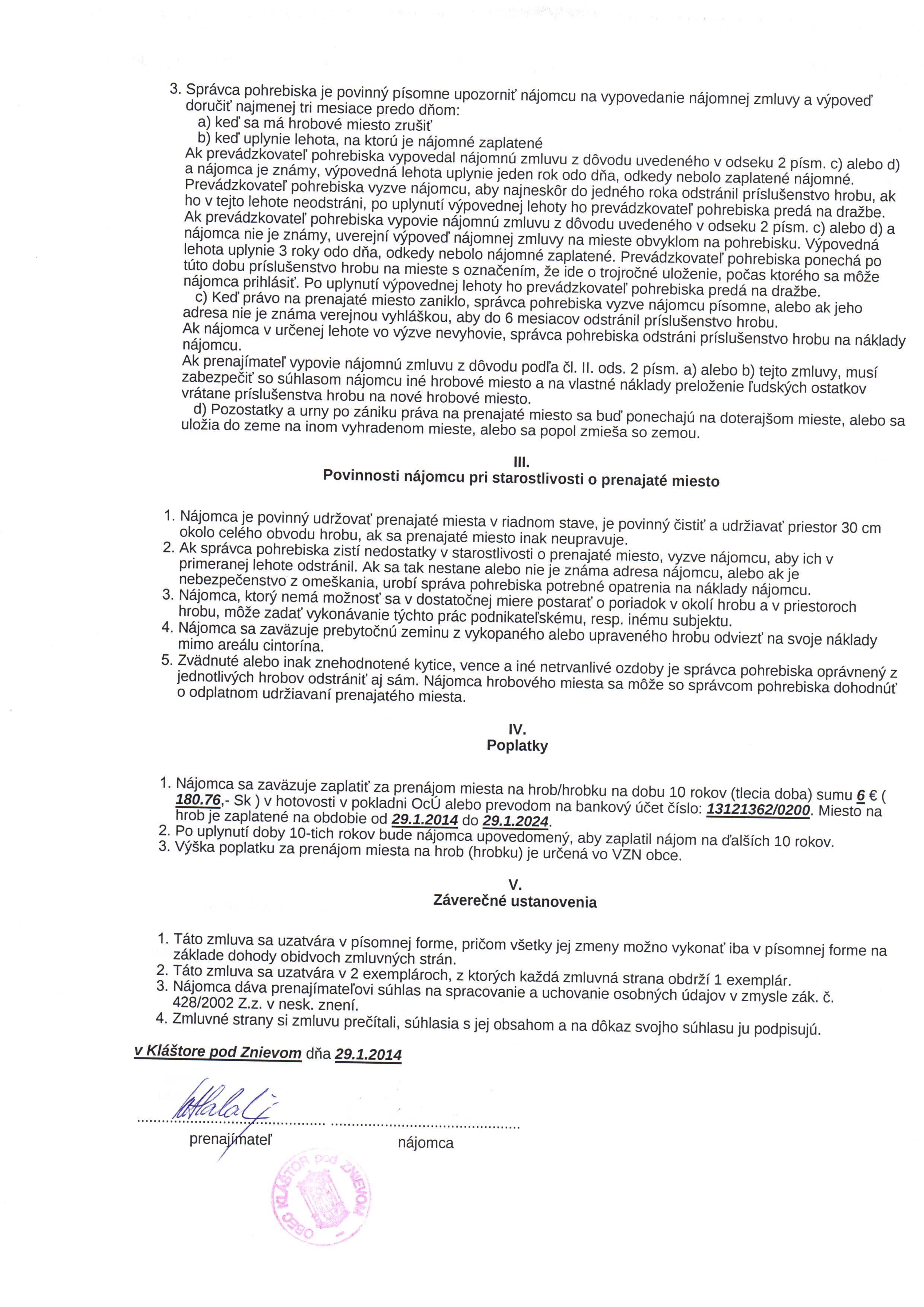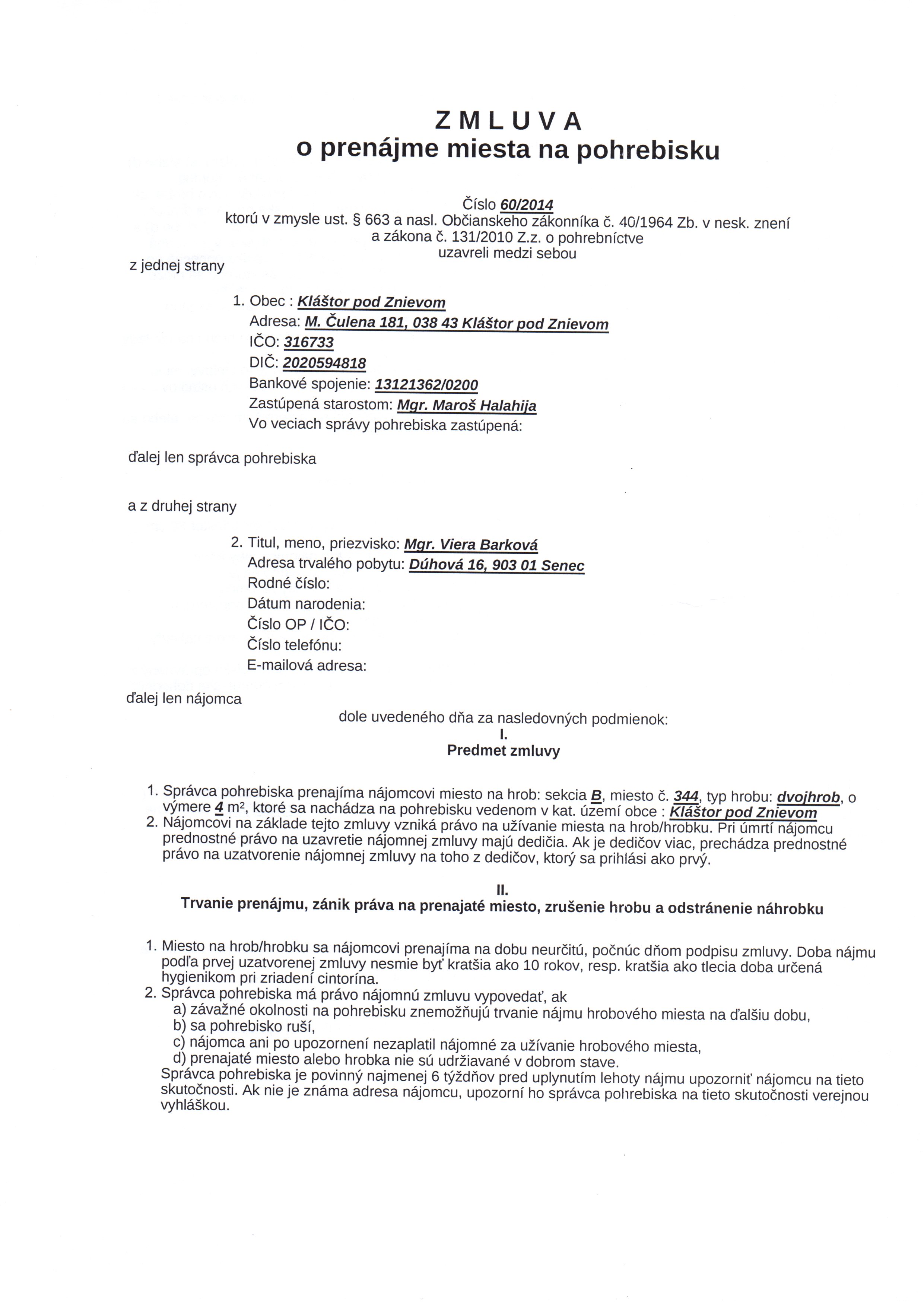 Názov:Zmluva o prenájme miesta na pohrebisku